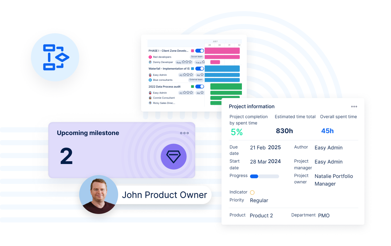 Easy Project offers on-premises deployment options with auditable, certified source code, ensuring that all sensitive information remains securely protected within your organization’s controlled environment. This meets the highest security standards required by the industry, safeguarding your data and intellectual property.