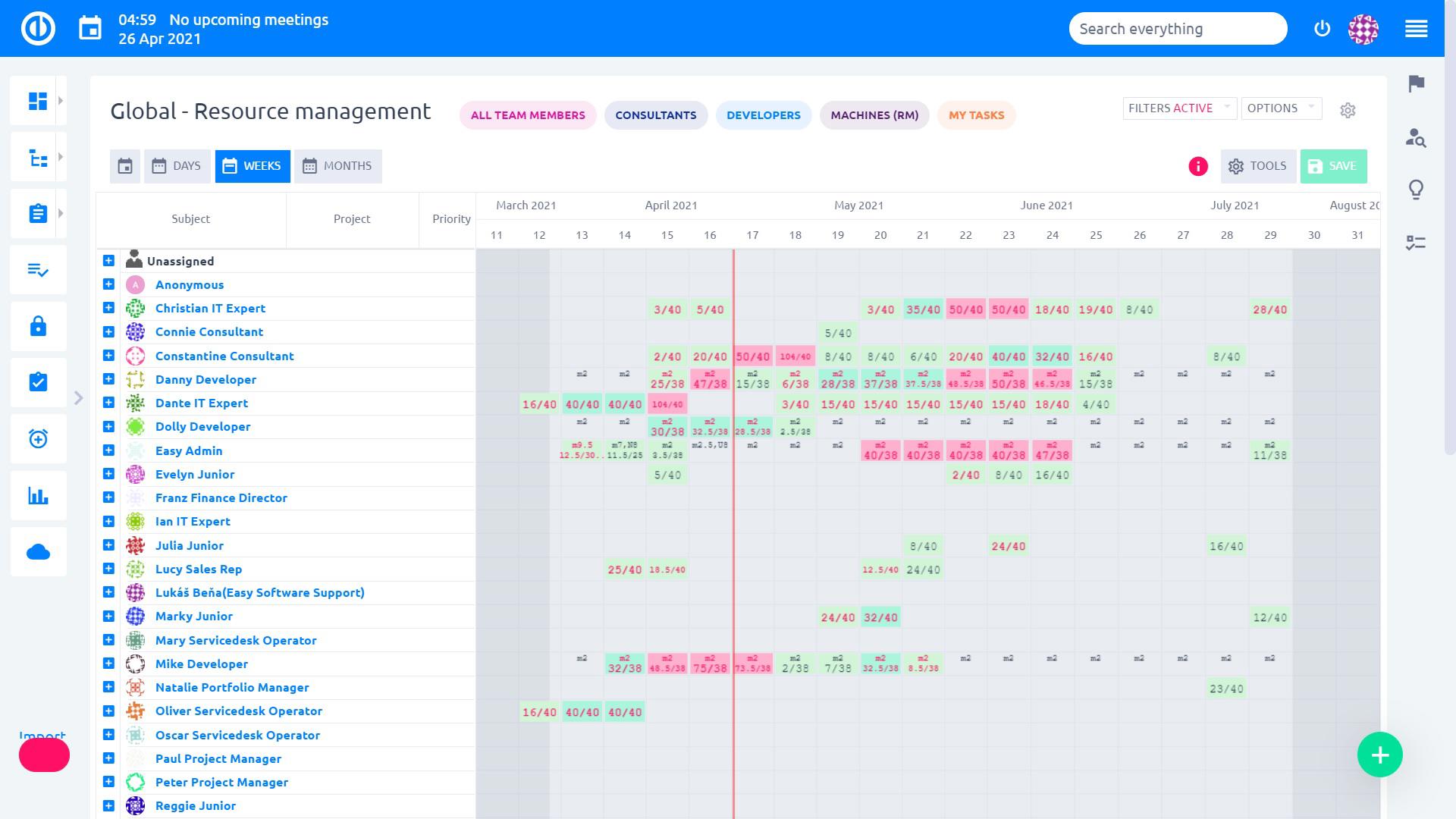 Easy Project combined with the Resource management plugin is an incredibly powerful tool that provides you also with a user-friendly and effective machines capacity planning solution.