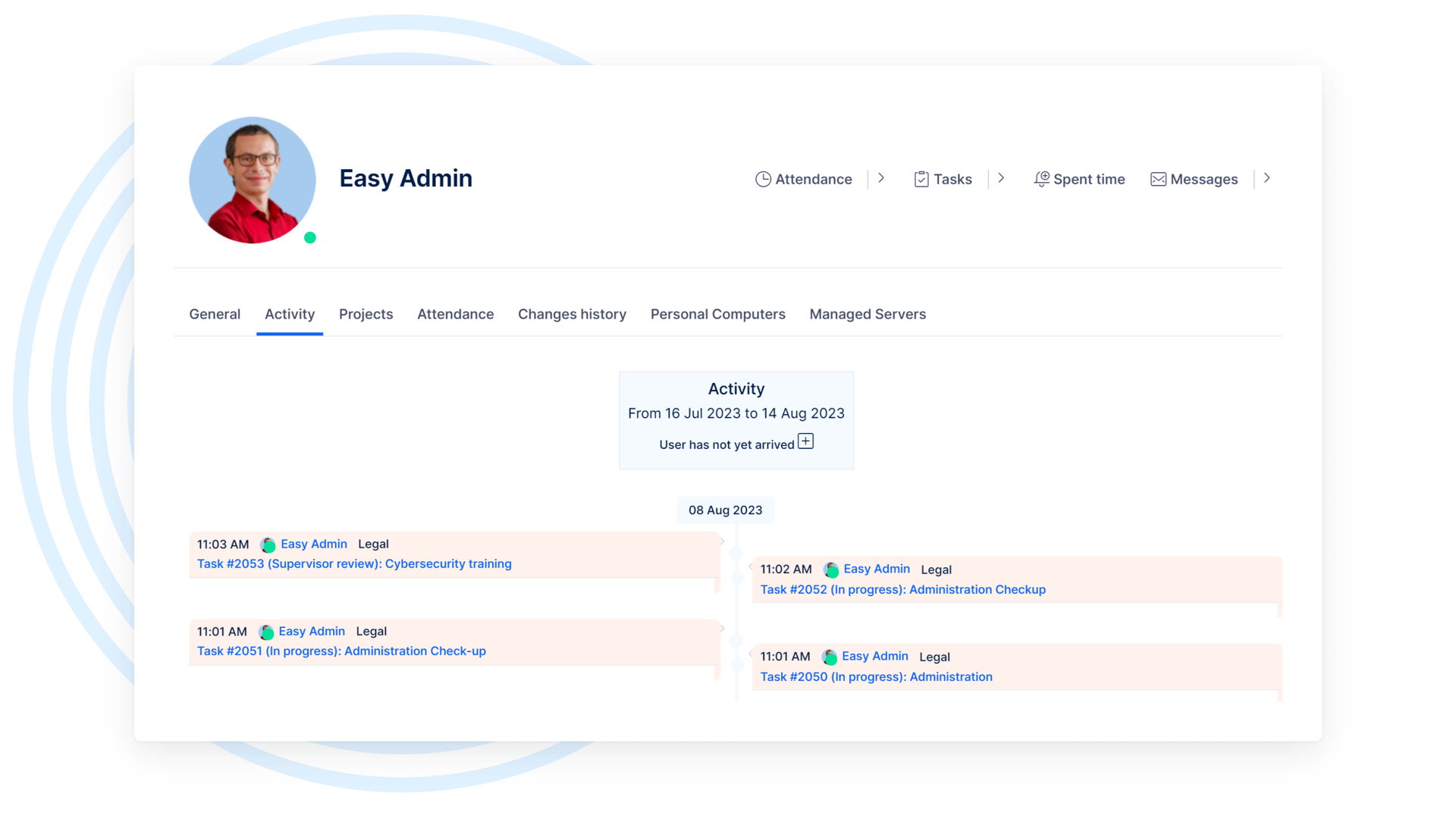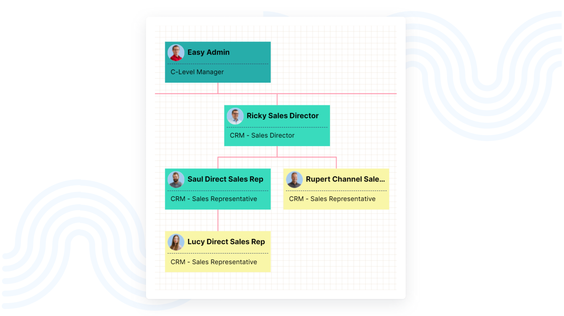 Die Organisationsstruktur ist eine Art Baumhierarchie, bei der jeder Nutzer in der Organisation einem anderen Nutzer untergeordnet ist, außer der Nutzer an der Spitze. Diese Anordnung hilft zu definieren, wie Aktivitäten, wie die Aufgabenzuteilung, sowie die Koordination und Überwachung standardmäßig in Richtung des Erreichens der Organisationsziele gesteuert werden können. Dadurch kann man auch bestimmen, wer dazu berechtigt ist, von Nutzern eingereichte Urlaubsanträge zu bestätigen.
