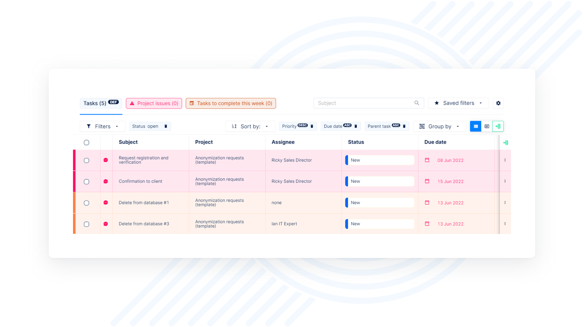 Easy Software nimmt den Schutz der persönlichen Daten ernst. Die europäische Verordnung, bekannt als Datenschutz-Grundverordnung (DSGVO), bringt allen Organisationen eine Vielzahl an Herausforderungen und wurde zu einem der Geschäftsthemen mit der meisten Resonanz. Unsere Mission ist, den Easy Project Kunden und im Allgemeinen allen Projektgemeinschaften eine zuverlässige Software zu bieten, die es ermöglicht, alle Pflichten der Datenverarbeitung effizient zu erfüllen. Easy Project ist ab der Version 1.3 zu 100% bereit für die DSGVO (Mai 2018).