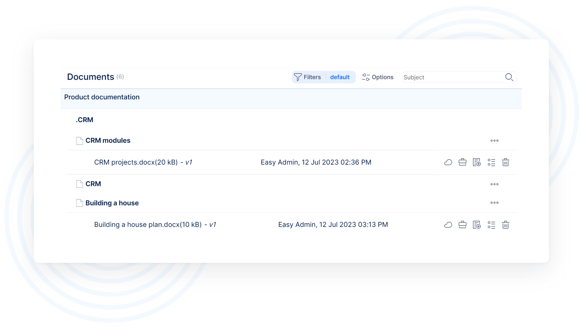 Dokumente können an Aufgaben und Projekte angehängt und dann leicht durchsucht, als Version gespeichert und online bearbeitet werden. Im Dokumentenmodul finden Sie einen kompletten Überblick über alle Anhänge eines bestimmten Projektes und damit zusammenhängende Aufgaben.
