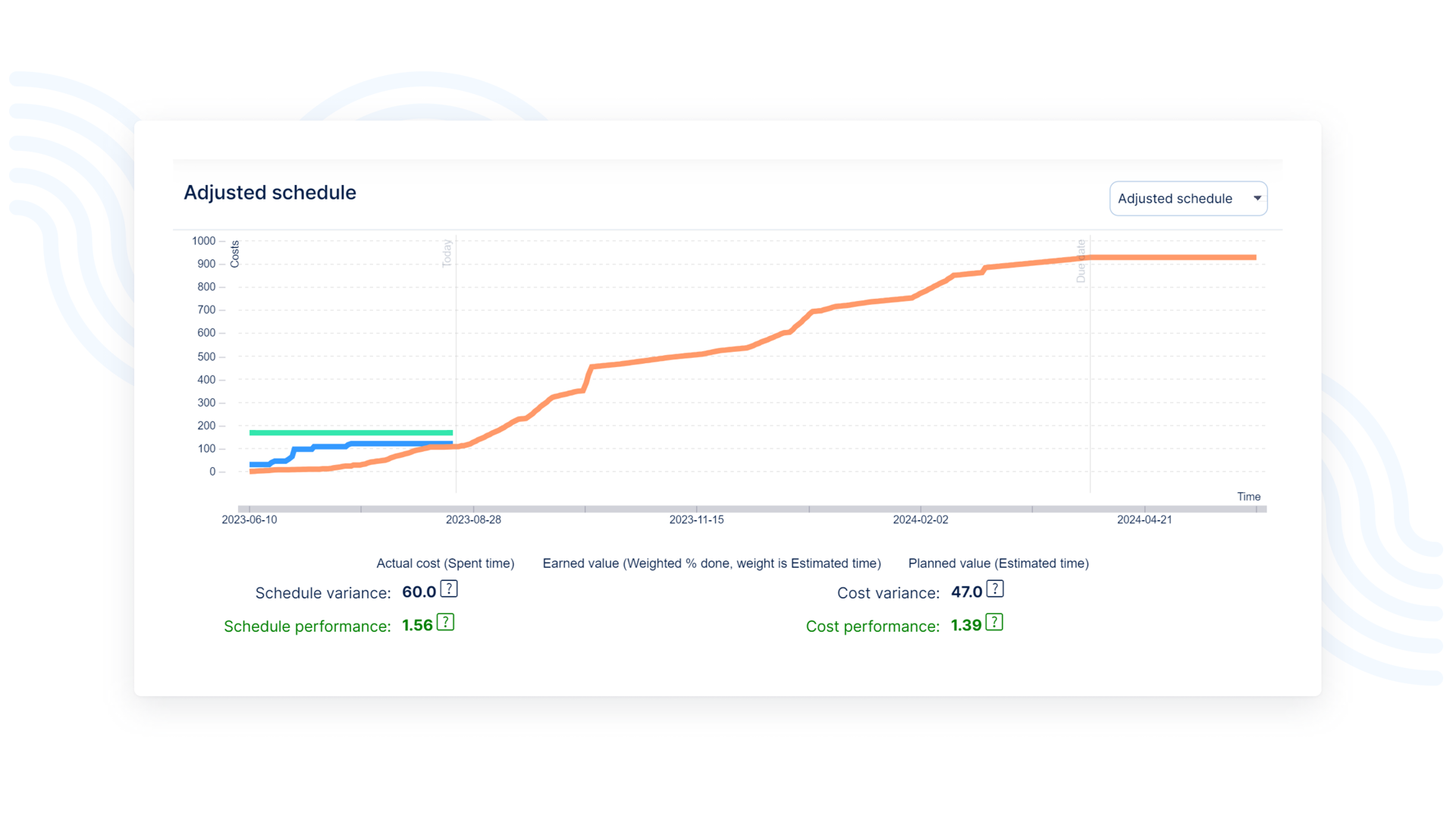 Define the scope and analyze project’s overall performance with Earned Value Management (EVM), a research-proven methodology for determining project success.