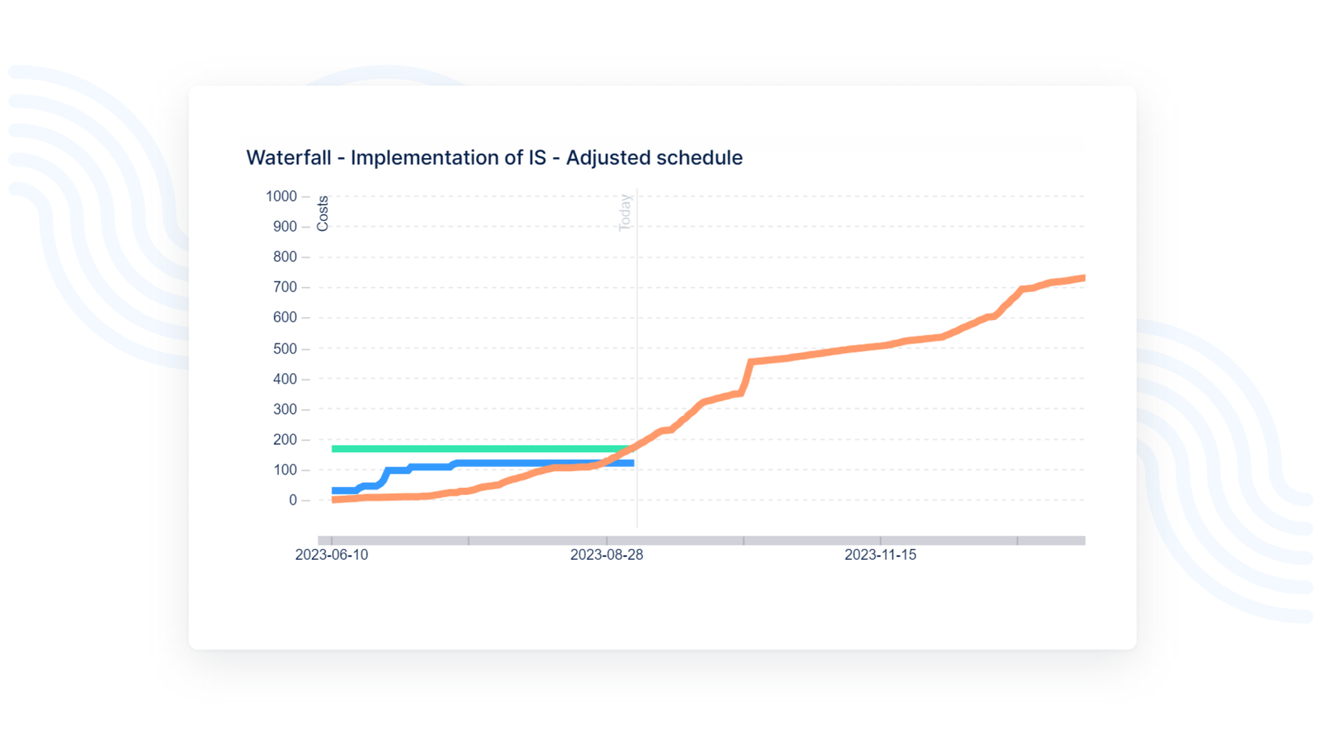 Beurteilen Sie die Projektleistung, indem Sie sie mit dem ursprünglichen Plan vergleichen. Baselines bietet Momentaufnahmen des Projektplans in verschiedenen Momenten, so dass Sie den Plan leicht mit der aktuellen Performance in Ihrem Gantt-Diagramm vergleichen können.