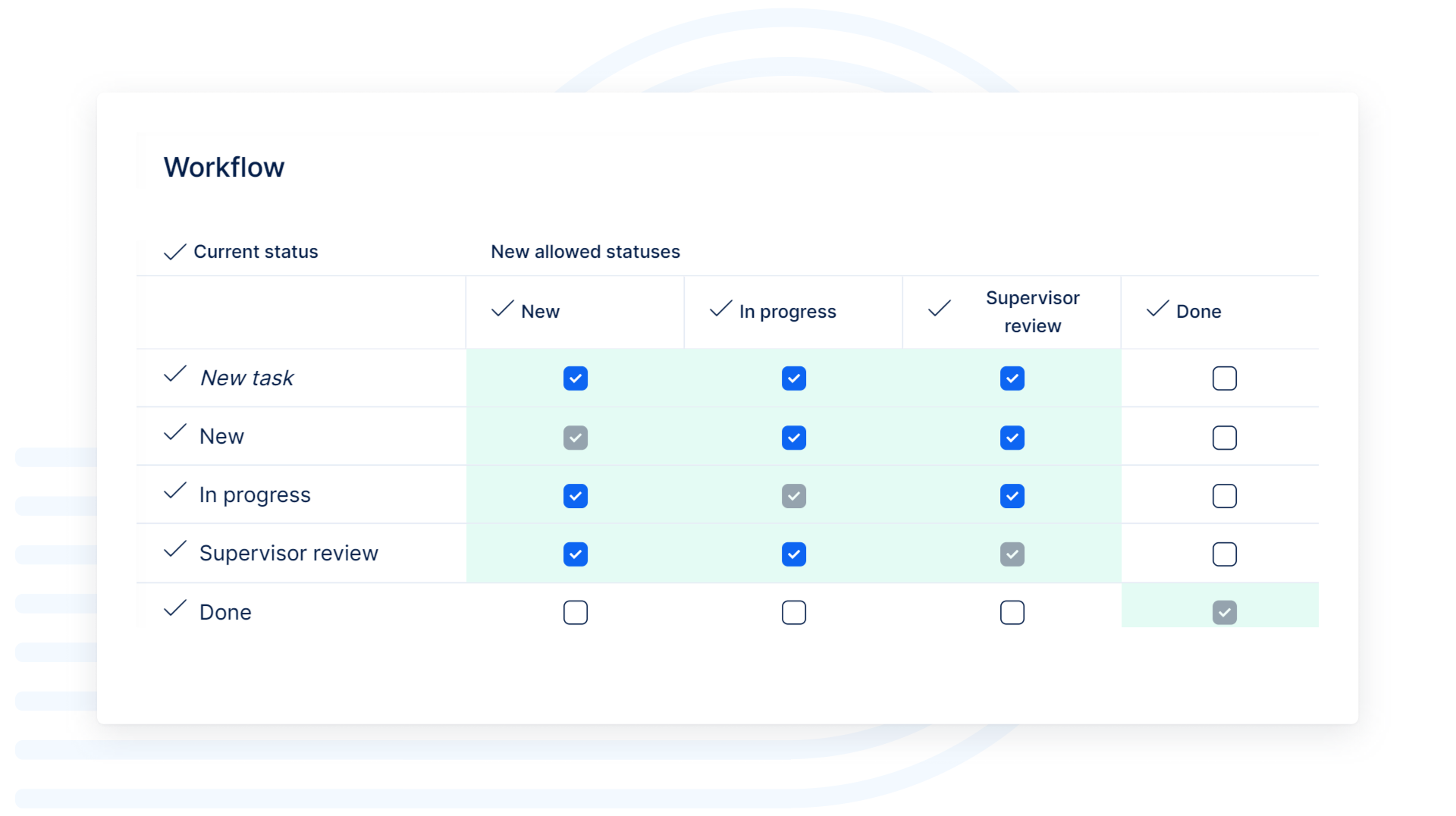 Arbeitsablauf ermöglichen es Ihnen Geschäftsprozesse zu definieren, auszuführen und zu automatisieren, Chaos zu eliminieren und Aufgaben zwischen den Mitarbeitern zu koordinieren. Mit Easy Project können Sie Aufgabenberechtigungen und Arbeitsablauf, basierend auf Benutzertypen, festlegen.