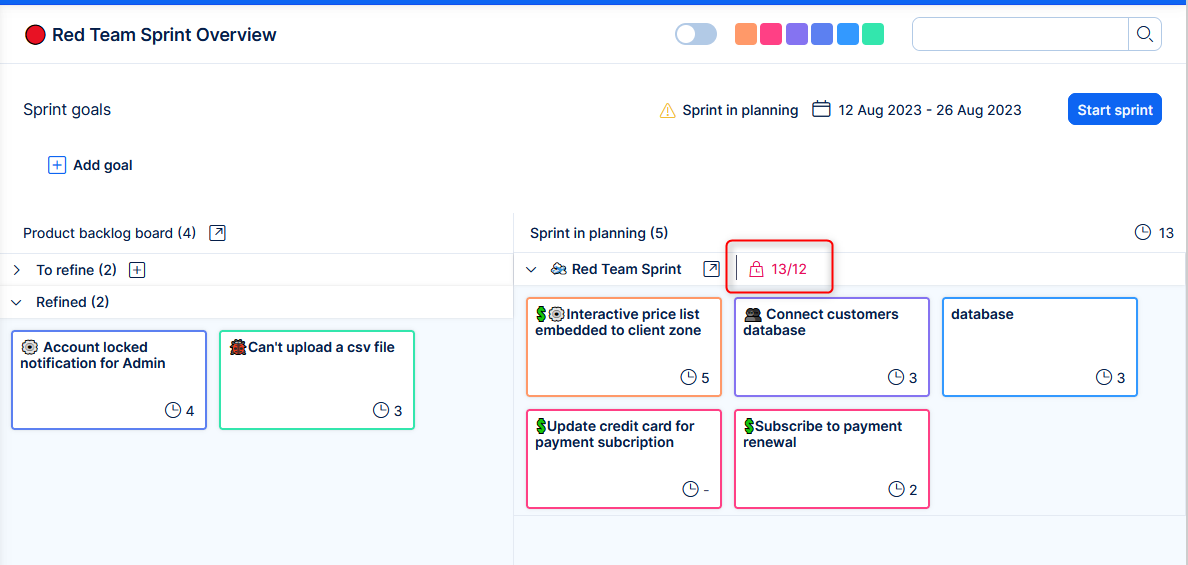 The empty swimlane, which is used only for small sticky notes (without PBI) is kept at the top after the sprint planning. There are small notes that make their way right at the beginning of the sprint. Previously you had to manually drag the empty swimlane from the bottom.