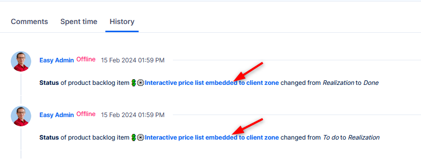 To save time jumping between PBI and tasks, you can now log time directly from the PBI. The time is logged on the source task. In case of missing source task, you have to manually select a task to log the time on. Global settings, project settings, activities and permissions are applied.