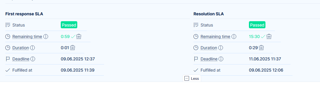 - Information about SLA Response appears in the task detail only when the task is in the default status, which is defined on a respective task type.