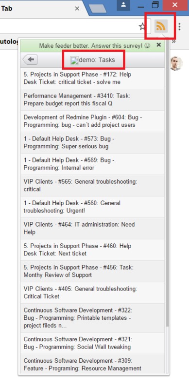 For example, when we subscribe to the list of tasks in Easy Project, the RSS feed will look like this.