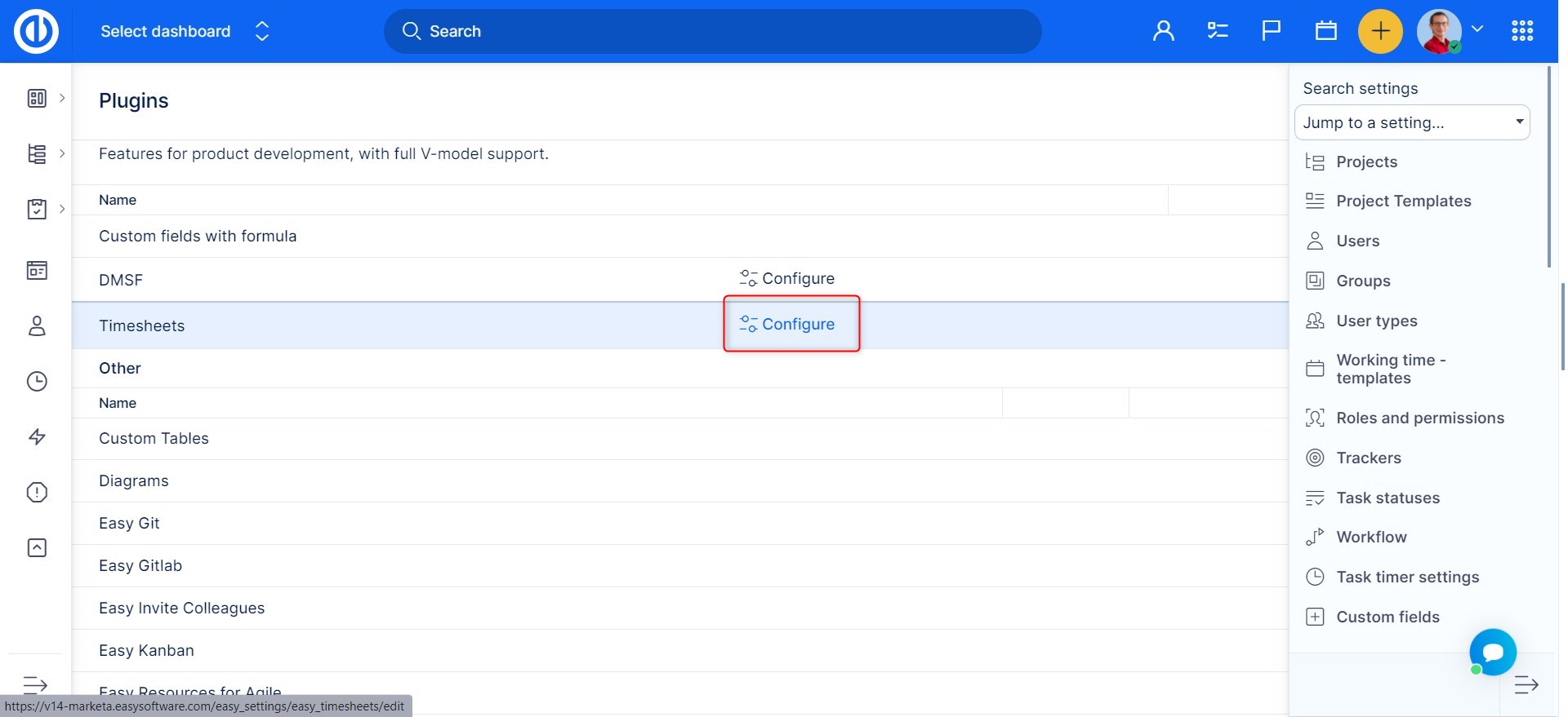 Timesheets can be opened via the Global menu or you can use URL: clientsdomain/easy_timesheets