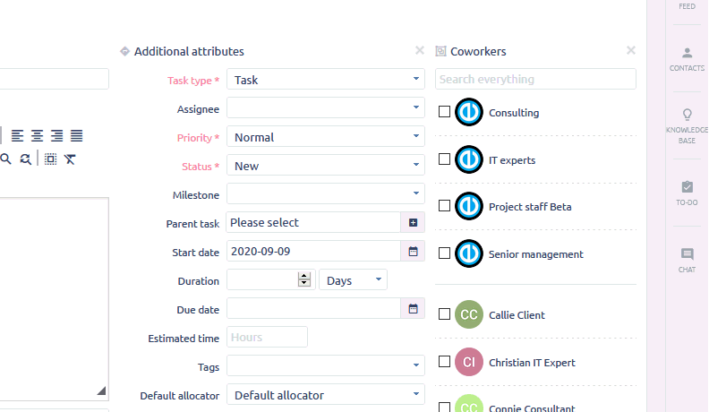 - Búsqueda de colaboradores en el nuevo formulario de tareas– añade colaboradores directamente mientras creas una nueva tarea