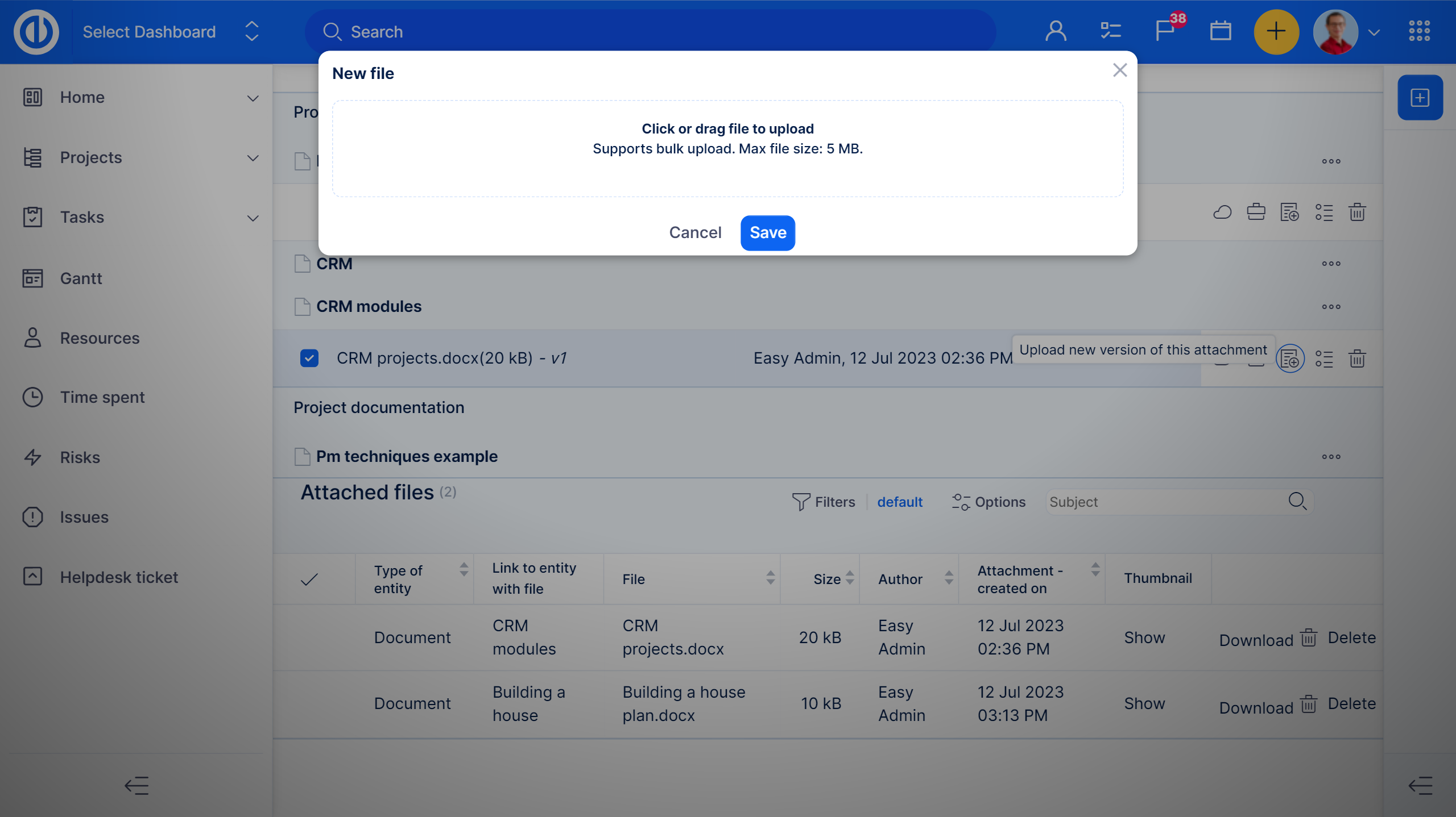 - Visi˘n general completa de todos los archivos adjuntos de tarea en el proyecto
