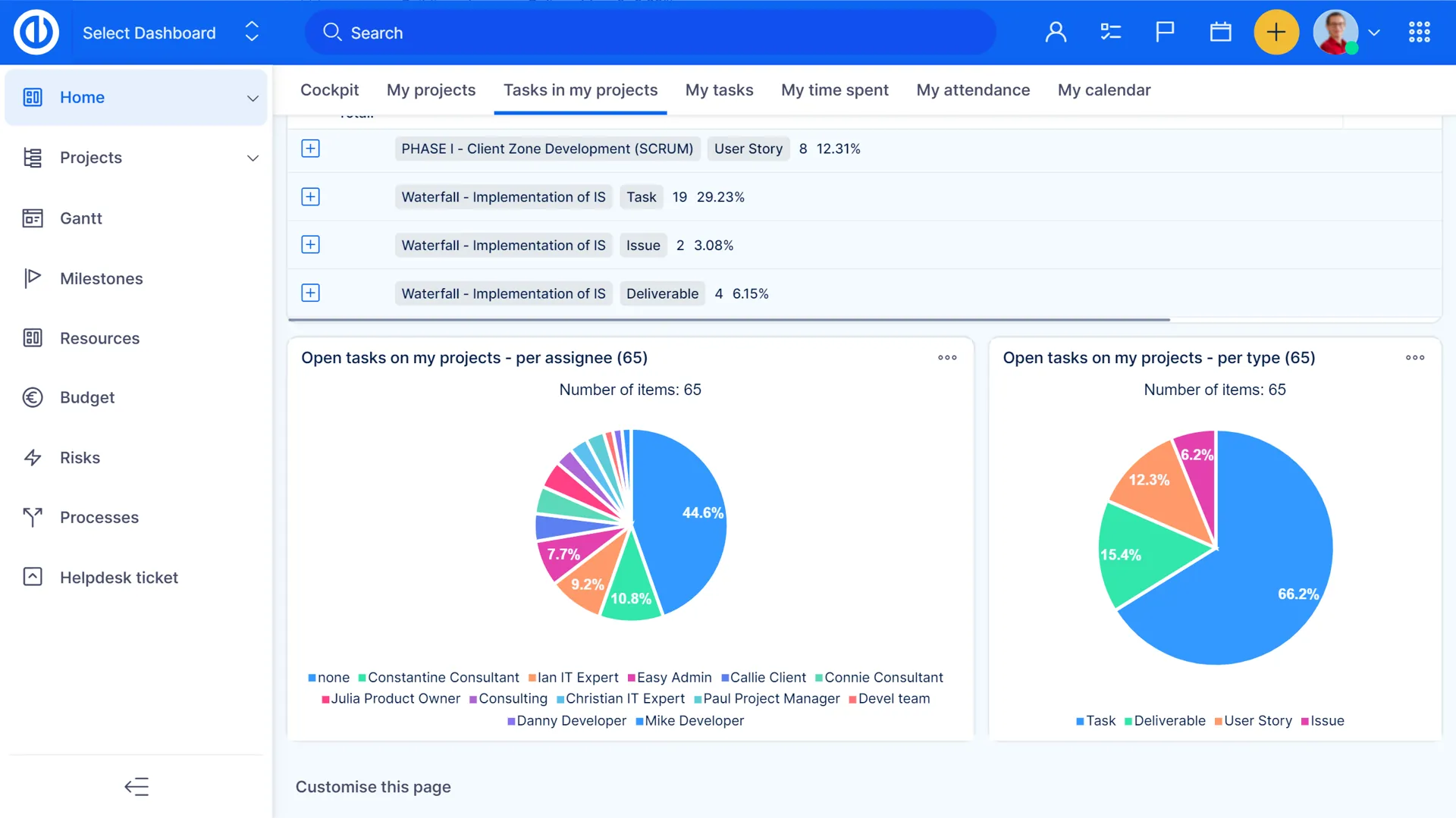 Visualisez les statistiques disponibles à l'aide de graphiques à secteurs, à barres et à secteurs. Créez des graphiques à partir de n’importe quelle liste d’entrées et, en quelques clics, préparez un rapport sur les performances de votre projet et montrez ce qu’il faut améliorer.