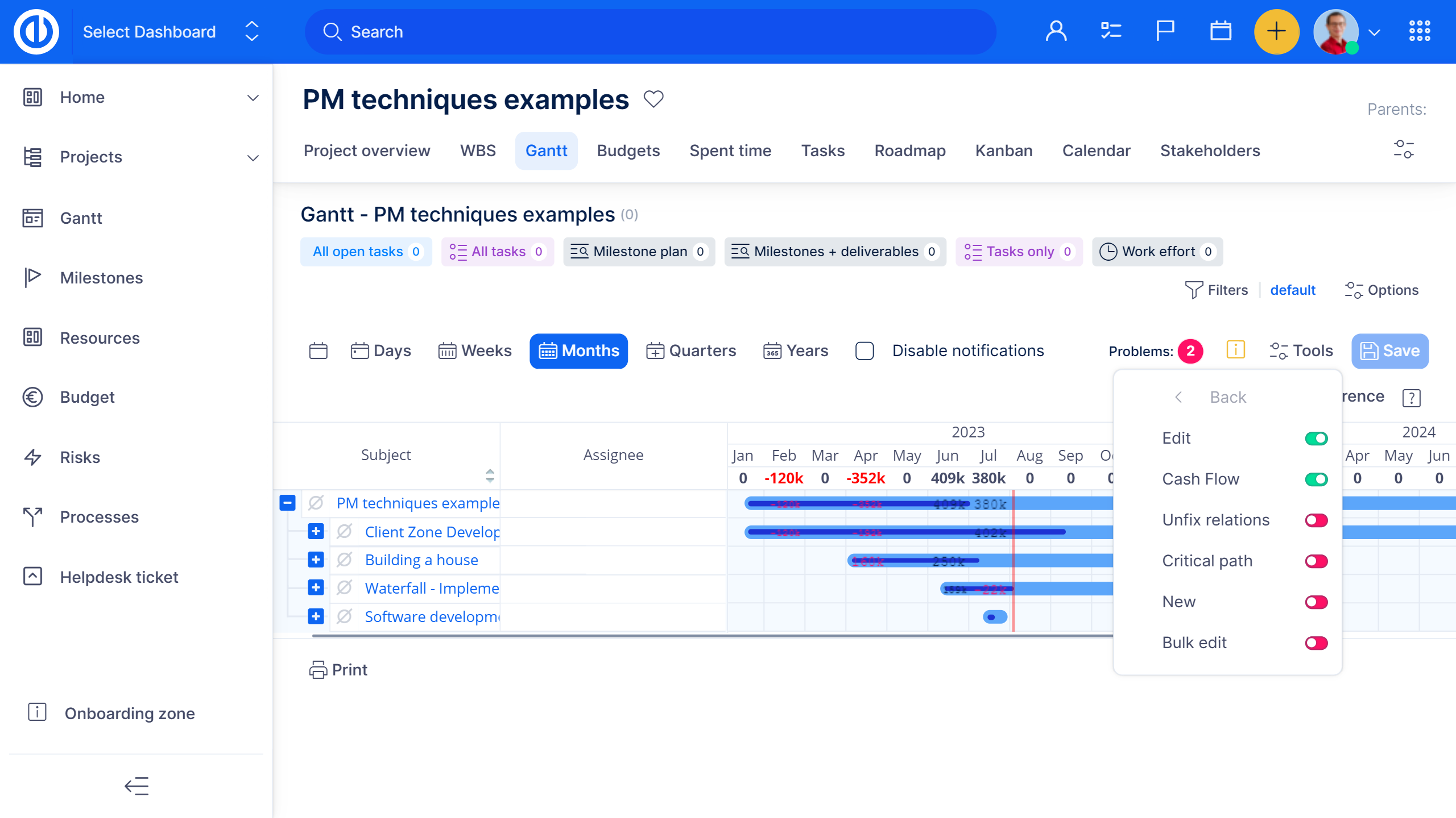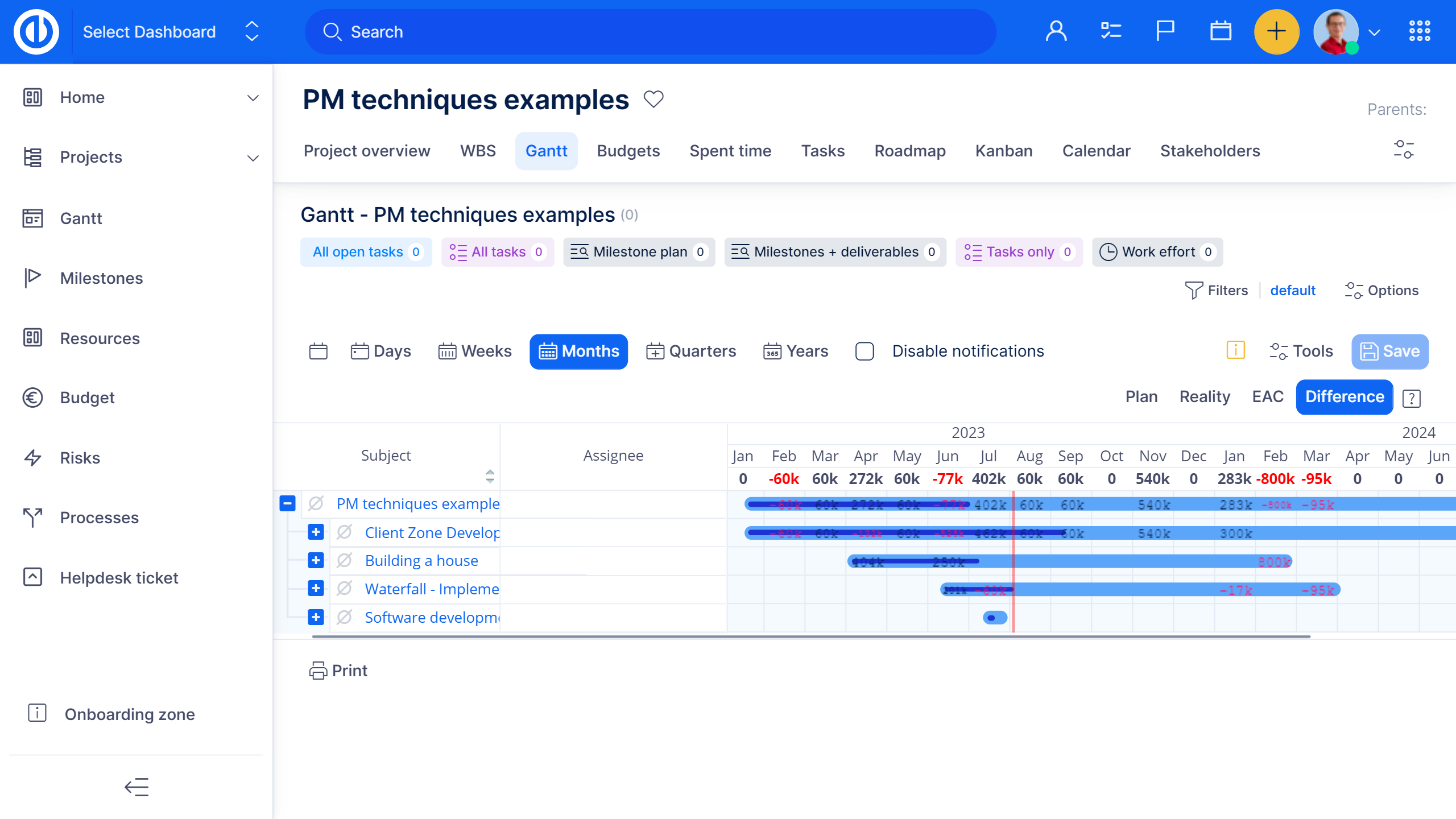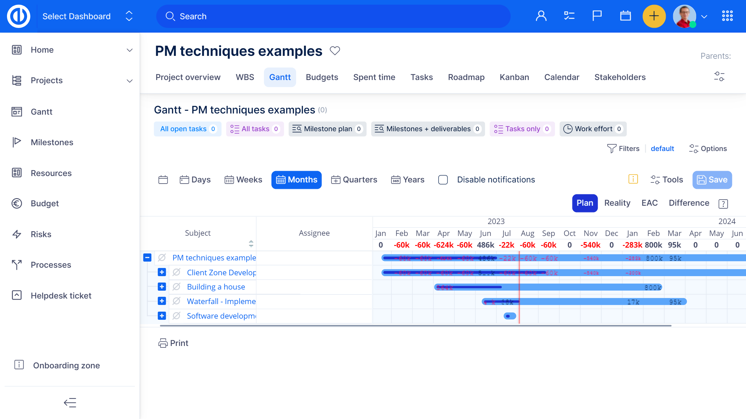 La pianificazione dei costi è fondamentale per avere una gestione progetti di successo. Easy Project ti permette di creare budget su misura per i tuoi progetti e poi confrontarli con le spese realmente effettuate. Puoi sempre monitorare il fatturato, i costi, gli stipendi e la redditività complessiva del progetto.