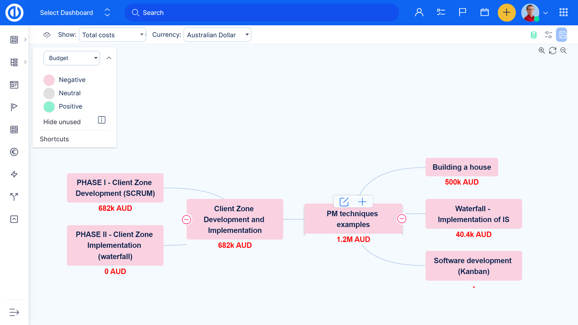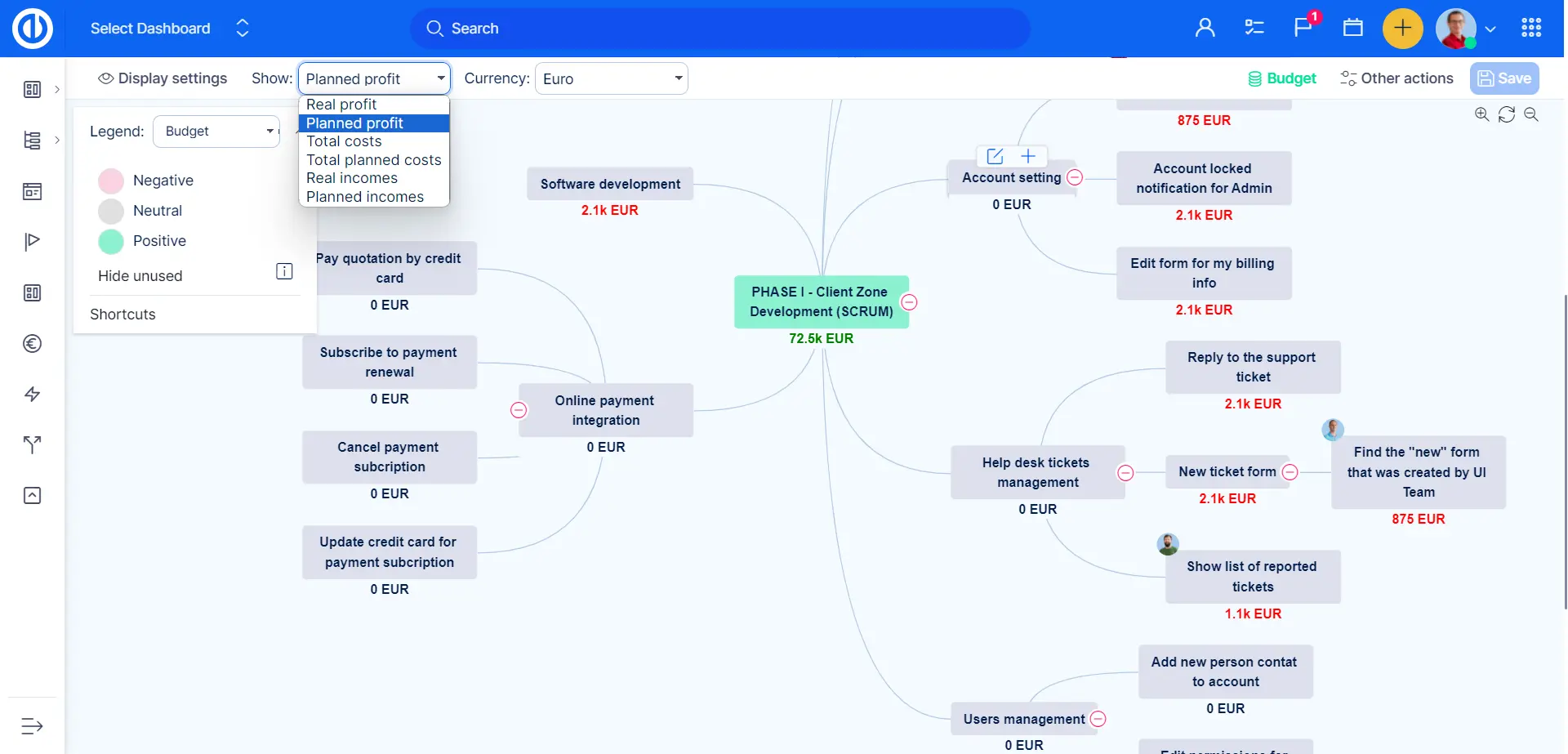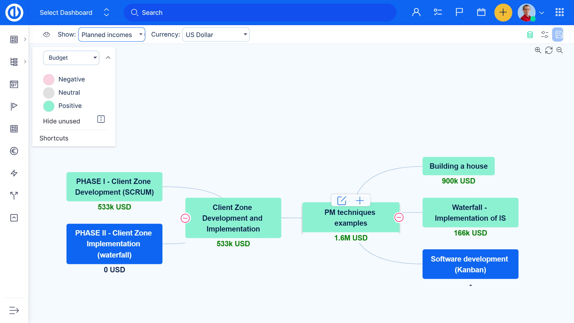 - Una visione visiva complessiva delle finanze del progetto in una mappa mentale