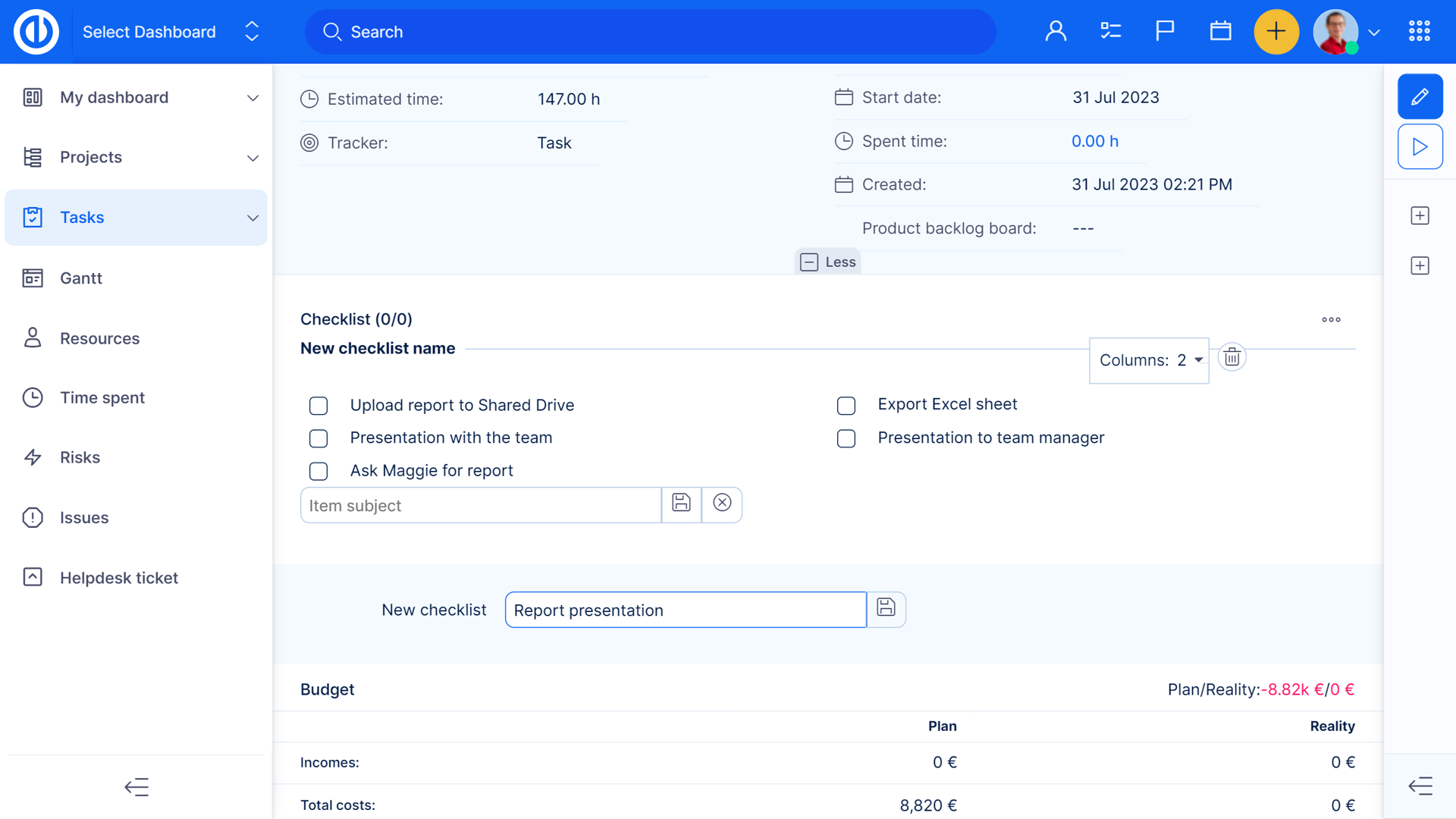 - Possibilit? di inserire un illimitato numero di voci in una checklist