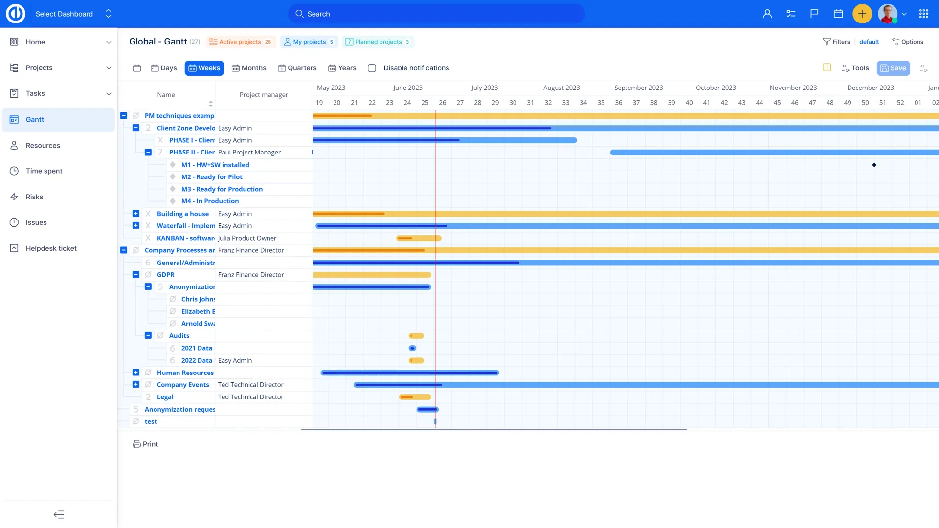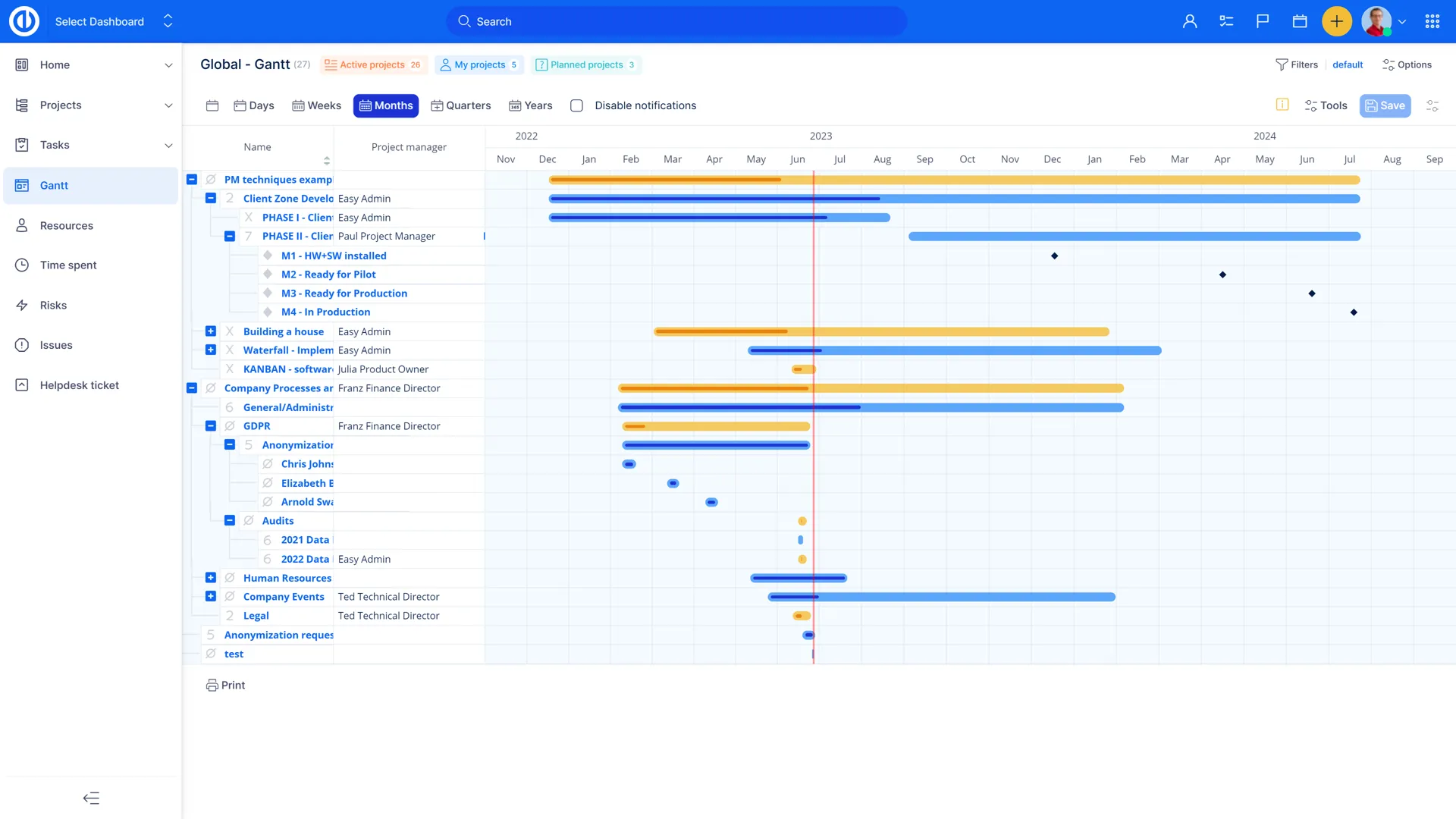 Un must-have per ogni Portfolio Manager - Global Gantt ti permette di pianificare accuratamente i progetti ed avere allo stesso tempo una panoramica generale sulla gestione. Non solo, potrai vedere in tempo reale se il progetto sta rispettando la tabella di marcia pianificata, cos? come il consumo delle risorse ed il flusso di cassa.