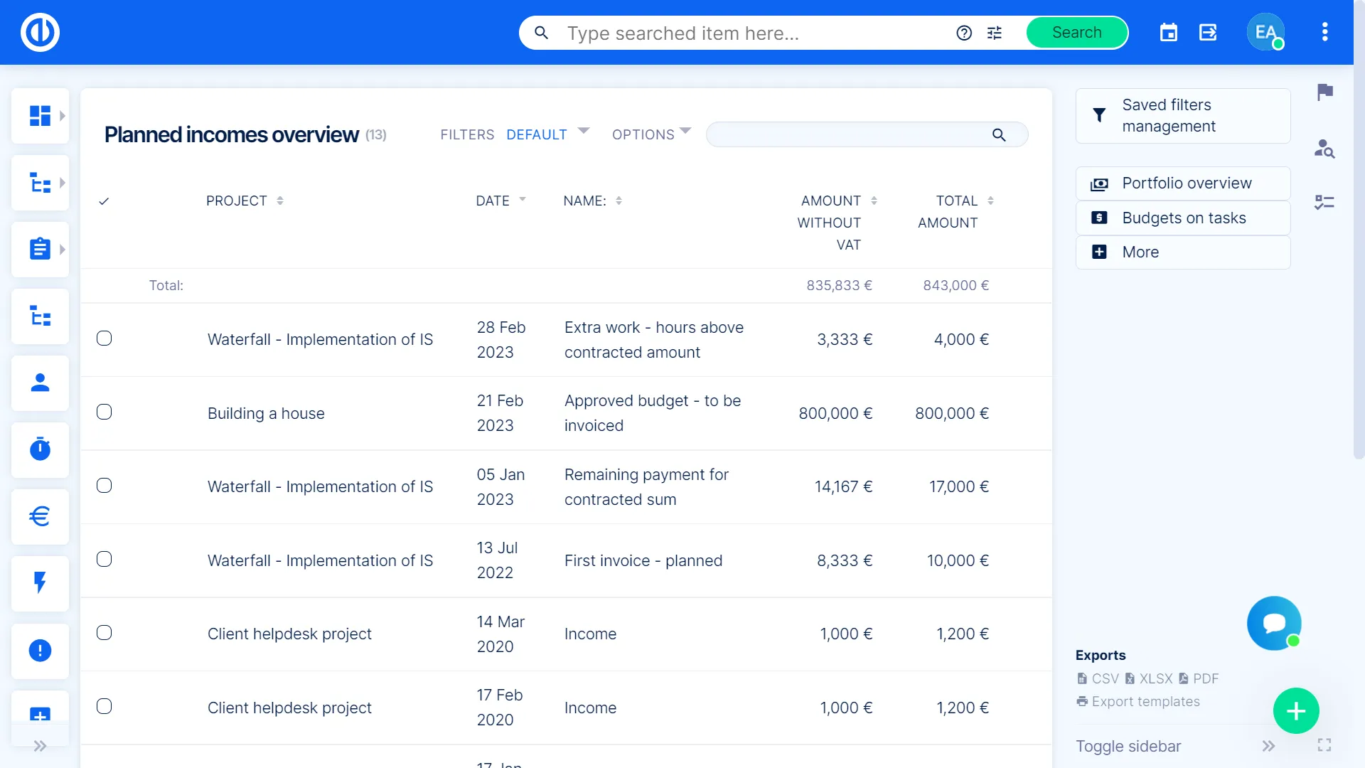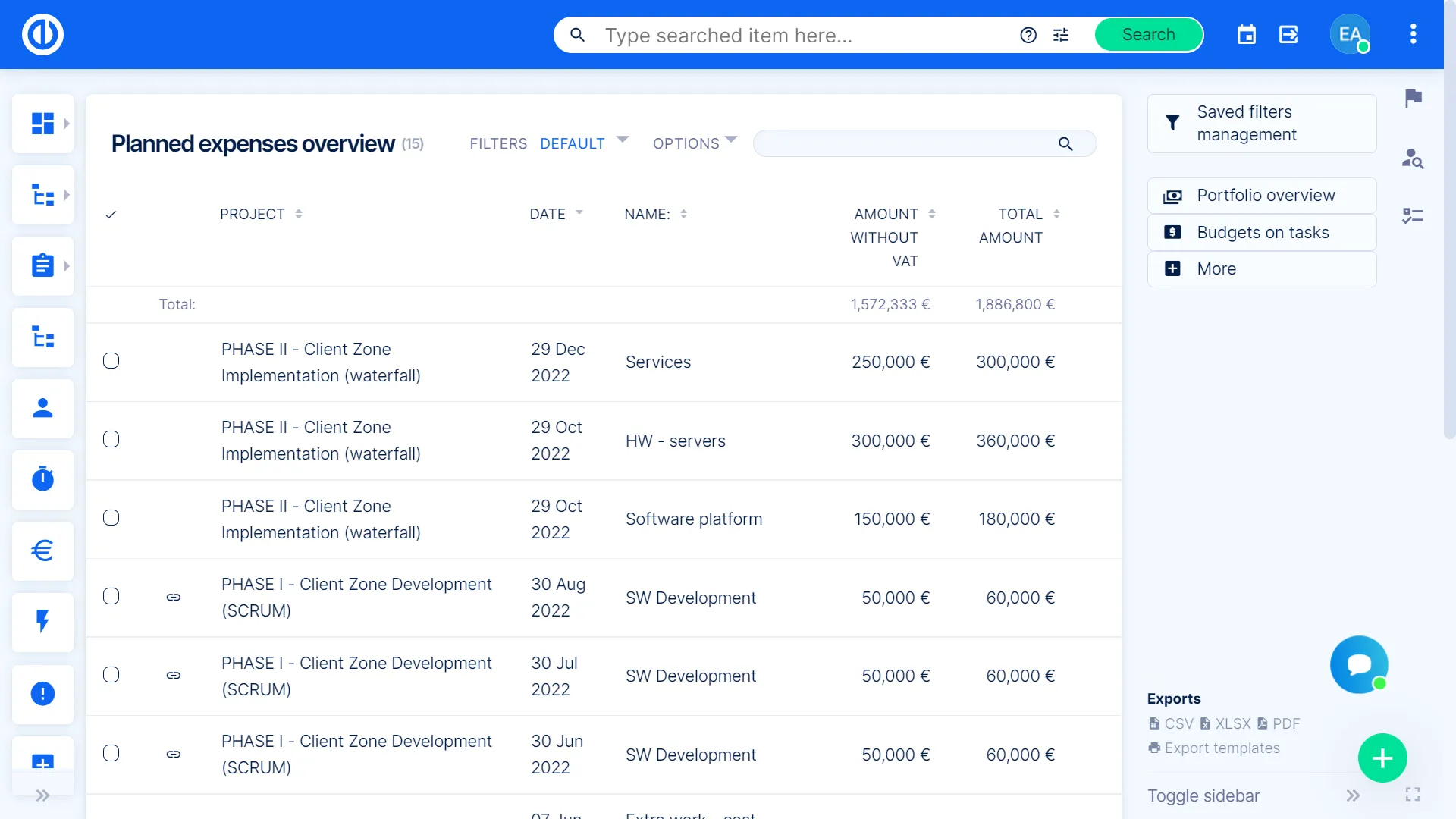 Crea Bilanci di Portfolio e report con un paio di click. Puoi facilmente gestire per il tuo portfolio il budget, tempo speso, risorse, etc… e tramite i grafici & diagrammi integrati, puoi trasformare il tutto in un report completo e dettaglio, pronto per una presentazione ai tuoi clienti.