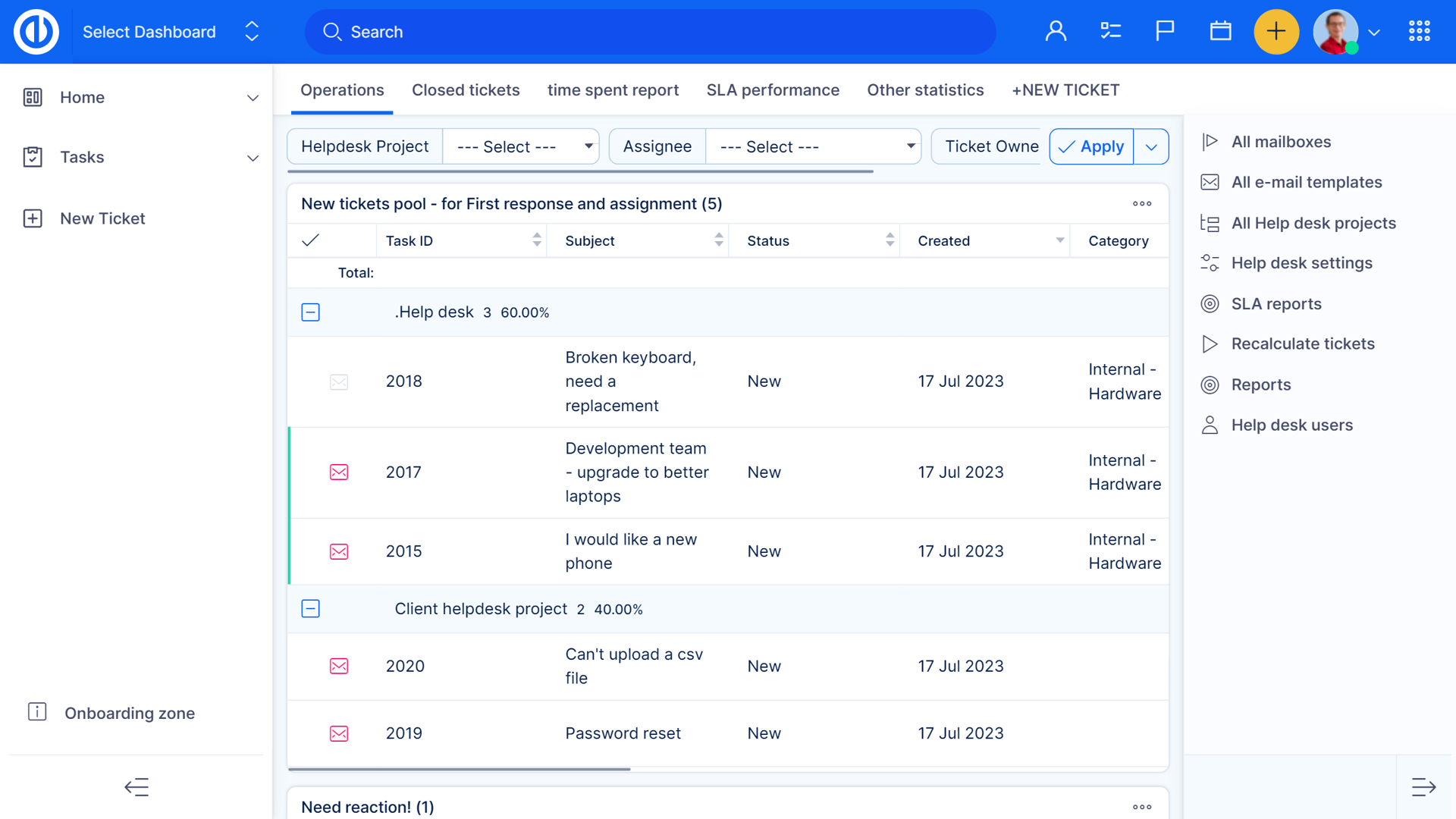 - Elenco per i ticket che richiedono la tua attenzione per revisionarli