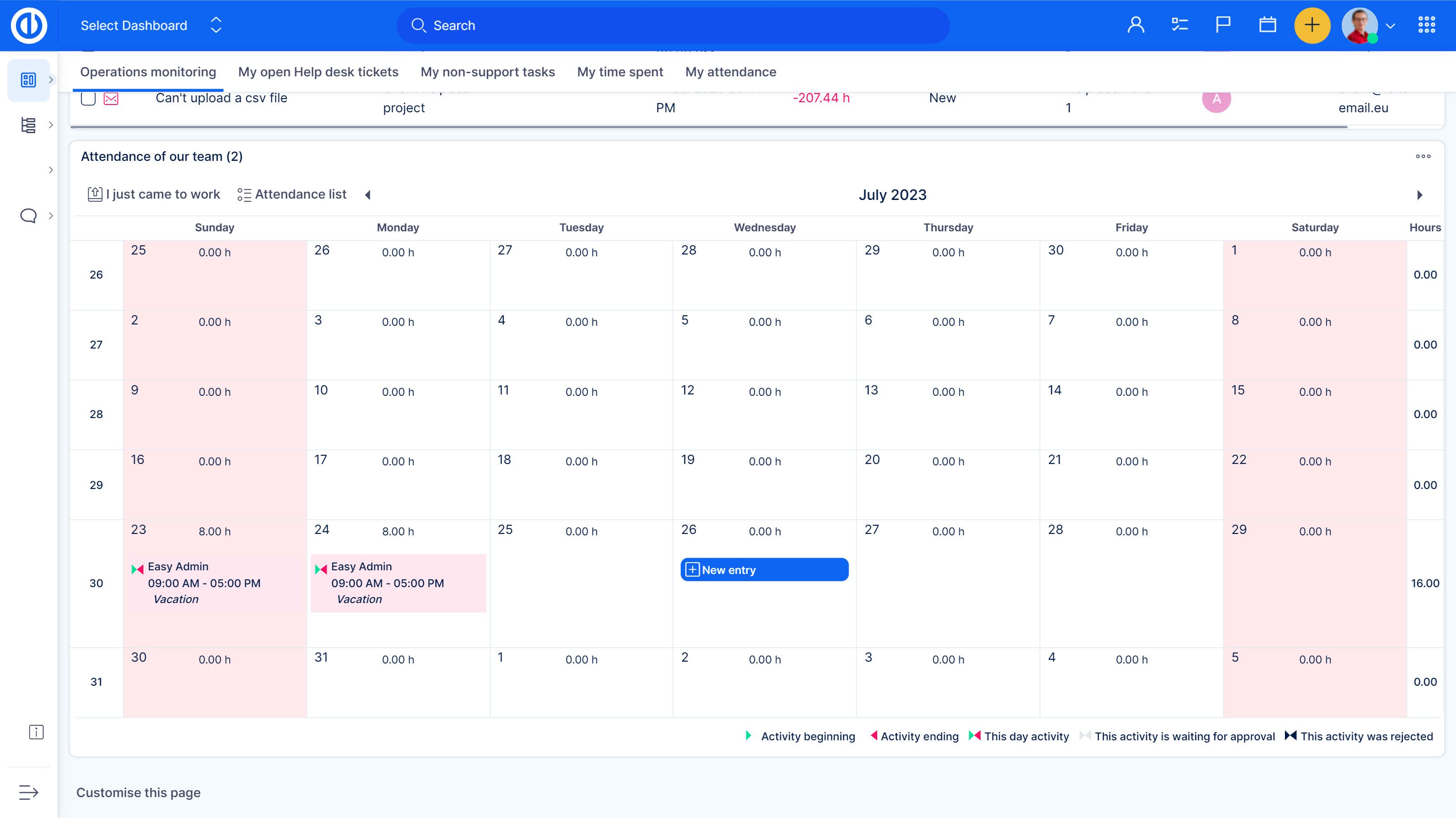 Tutto ciò di cui un manager di Help Desk necessita racchiuso in una sola dashboard - distribuisci rapidamente i vari ticket tra i tuoi dipendenti grazie i Badge Azione, aggiorna i ticket che richiedono la tua attenzione, tieni sotto controllo tutti i tuoi meeting con il tuo team e le sue performance.