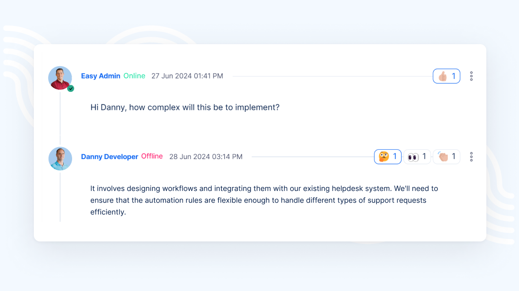 This feature makes task management smoother and more intuitive. Comment reactions were designed to boost team efficiency and communication flow.