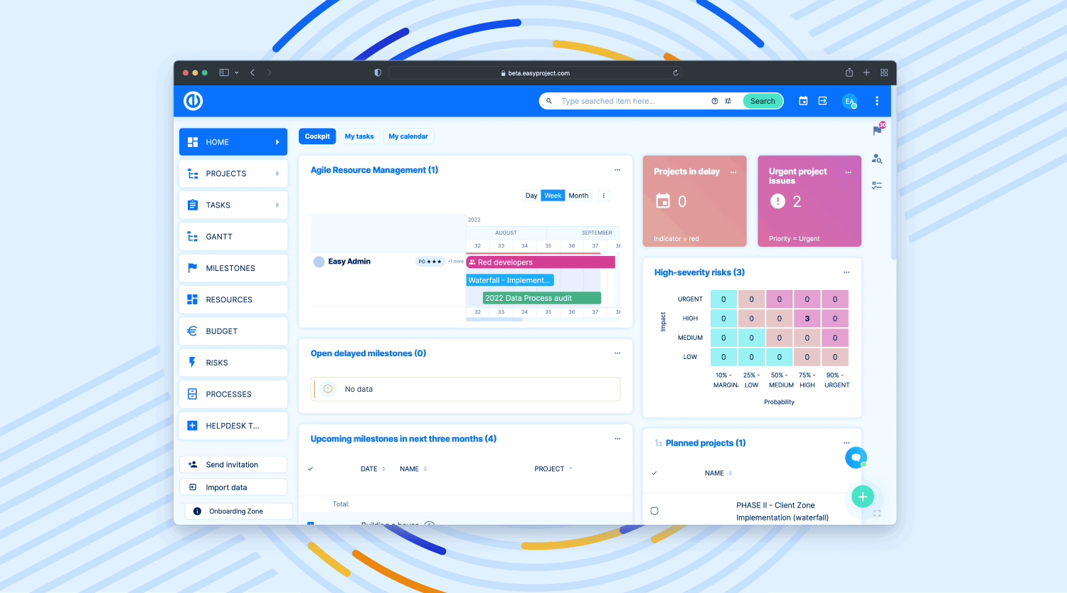 Innovative Agile Resource Management, Intuitive Task Form, clear Dynamic Filters. Easy Project 12 includes unique project management features while keeping things clear and under your control.