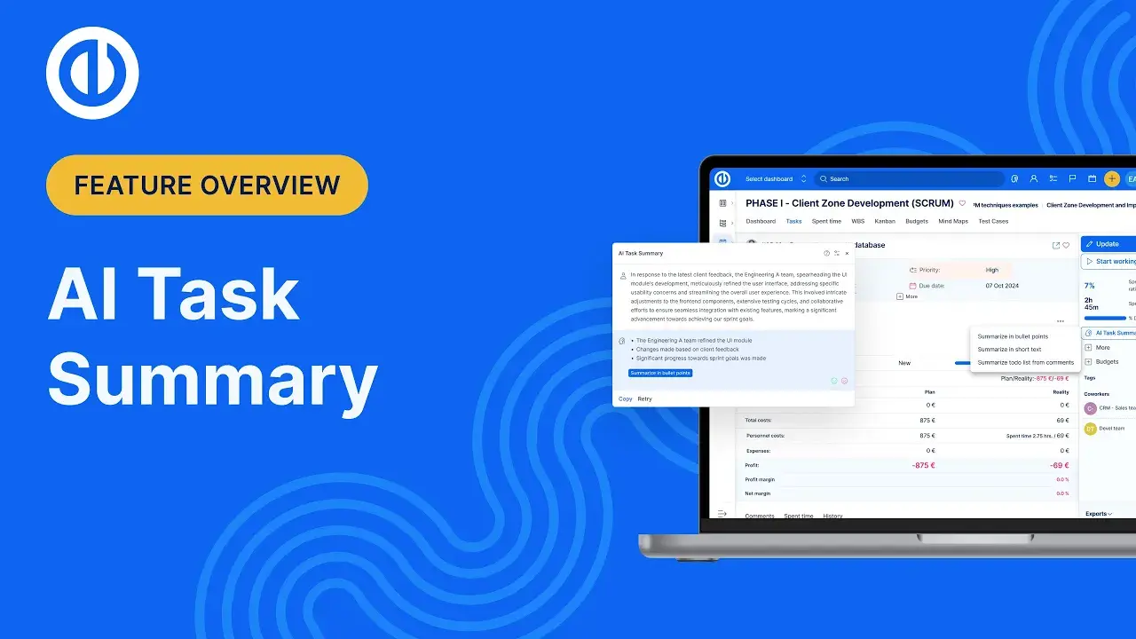 - Instant summaries with one click: Quickly create task highlights, cutting down on time spent reading and analysing.