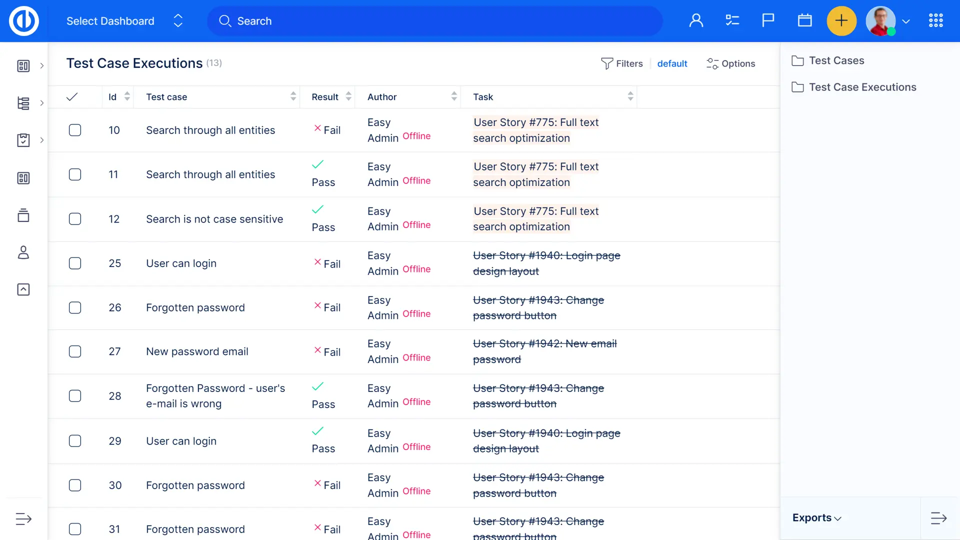 Manage your testing right in the projects. Test cases integrated with project management are a huge help for IT companies testing their solutions as well as for other industries (very popular and useful in the automotive industry, for example). This is a complete testing management for all testing methodologies.