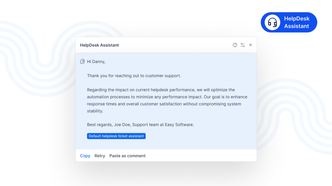 - Resourceful ticket replies: Responses generated by AI incorporate pertinent links or documents, equipping customers with tools for self-support and comprehensive understanding.