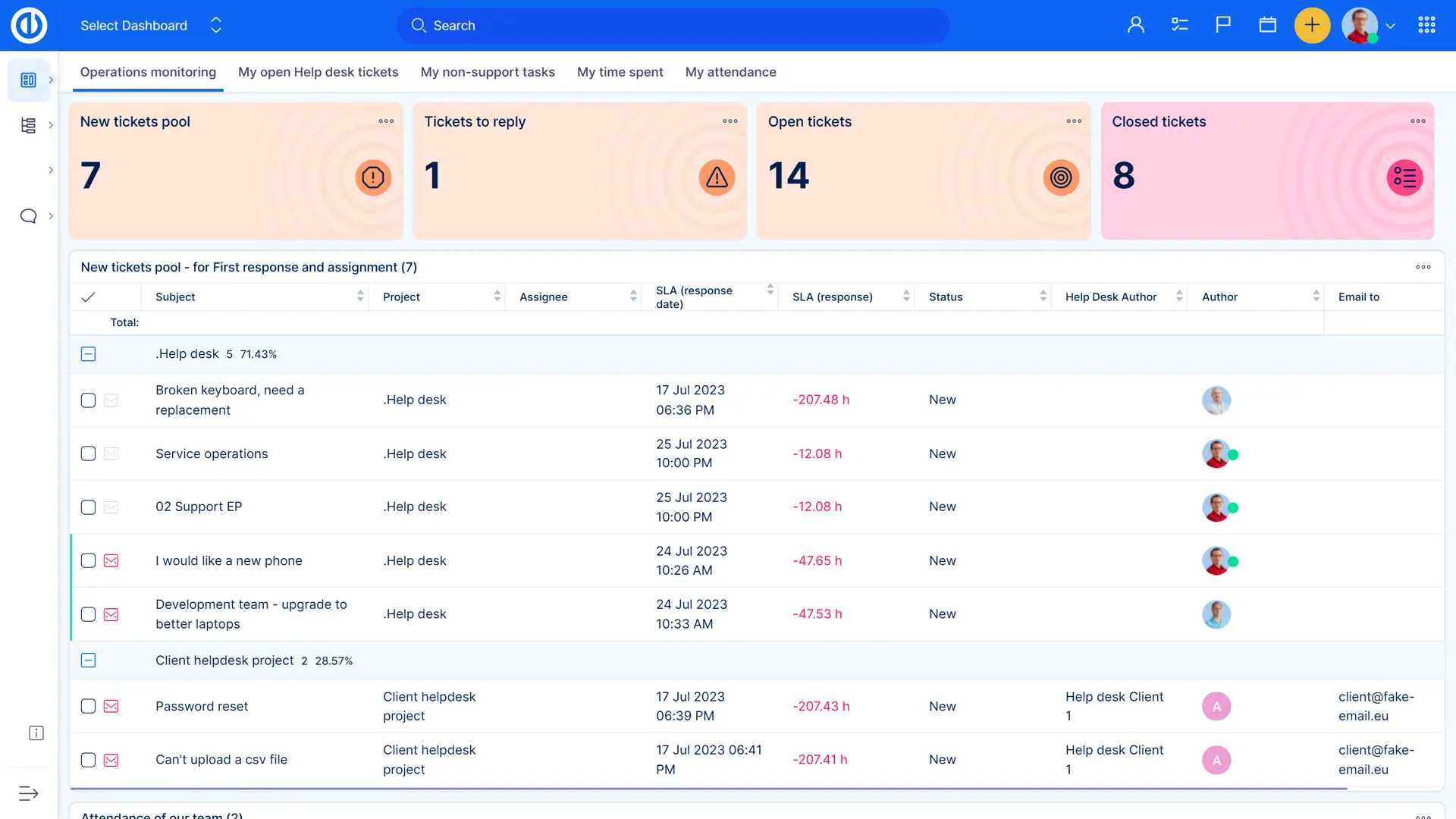 Everything a Help Desk manager needs is on one dashboard — quickly distribute tickets between workers with Action Buttons, update tickets that require your review, and keep track of all your meetings and the performance of your team.