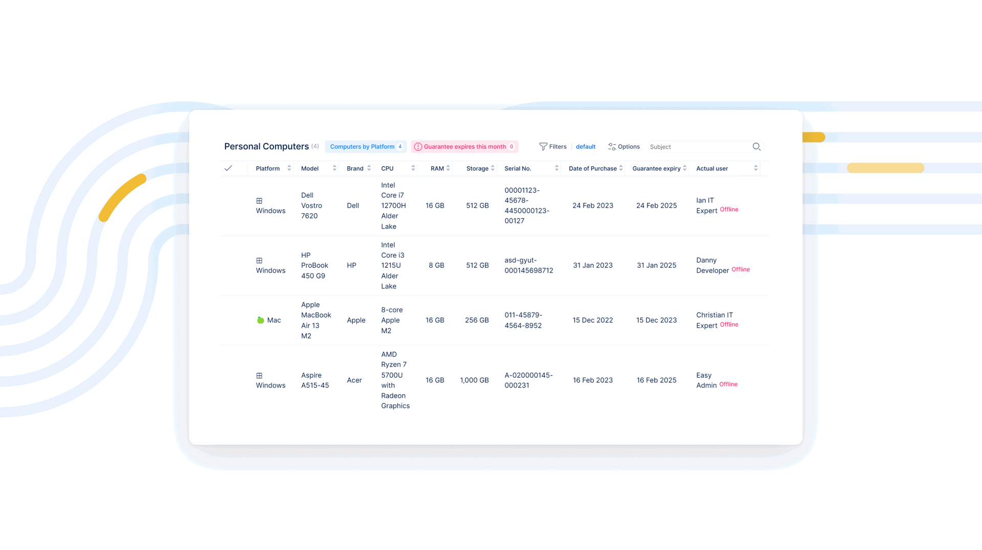 Easy Project's Asset & Configuration Management offers an effective solution for overseeing your resources, managing and organizing your assets and configurations. Tailored data fields, structures, filters, and dashboards enhance accessibility and usability. By connecting assets to various elements, setting access rights, and centralised control, you ensure your inventory and configurations remain current and available. This unified platform allows precise tracking of hardware usage, maintenance records, and software licence management, optimising resource utilisation and compliance.