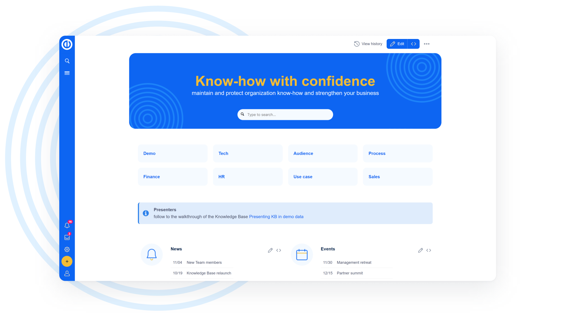 Centralise your organisation's knowledge in a unified platform, making it instantly available in on click. Our Wiki-powered information hub allows you to craft, modify, and oversee diverse content, from in-depth guides to intricate visuals. This robust system ensures vital data is both reachable and safeguarded, optimising workflows and protecting intellectual property.