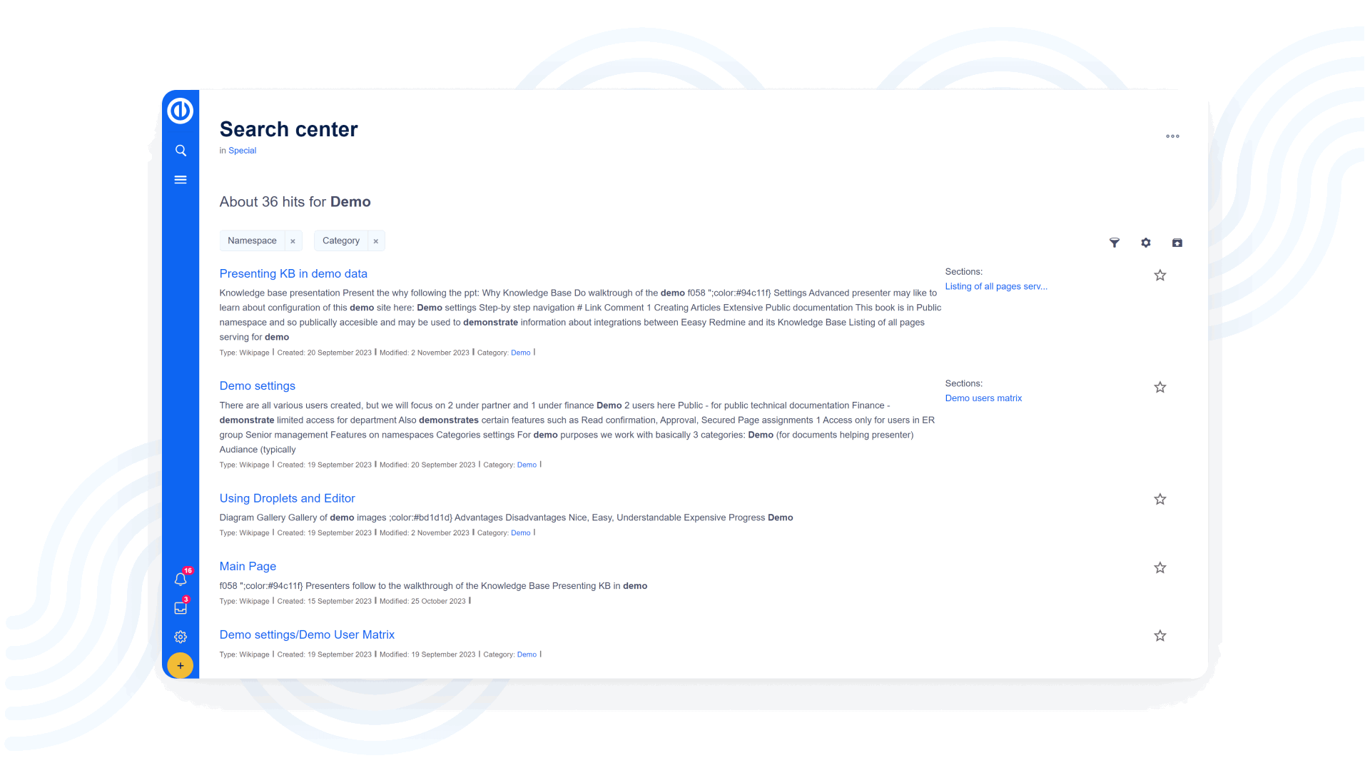 Advanced search with quick filters and content categories helps you find any information you are looking for in a few seconds.