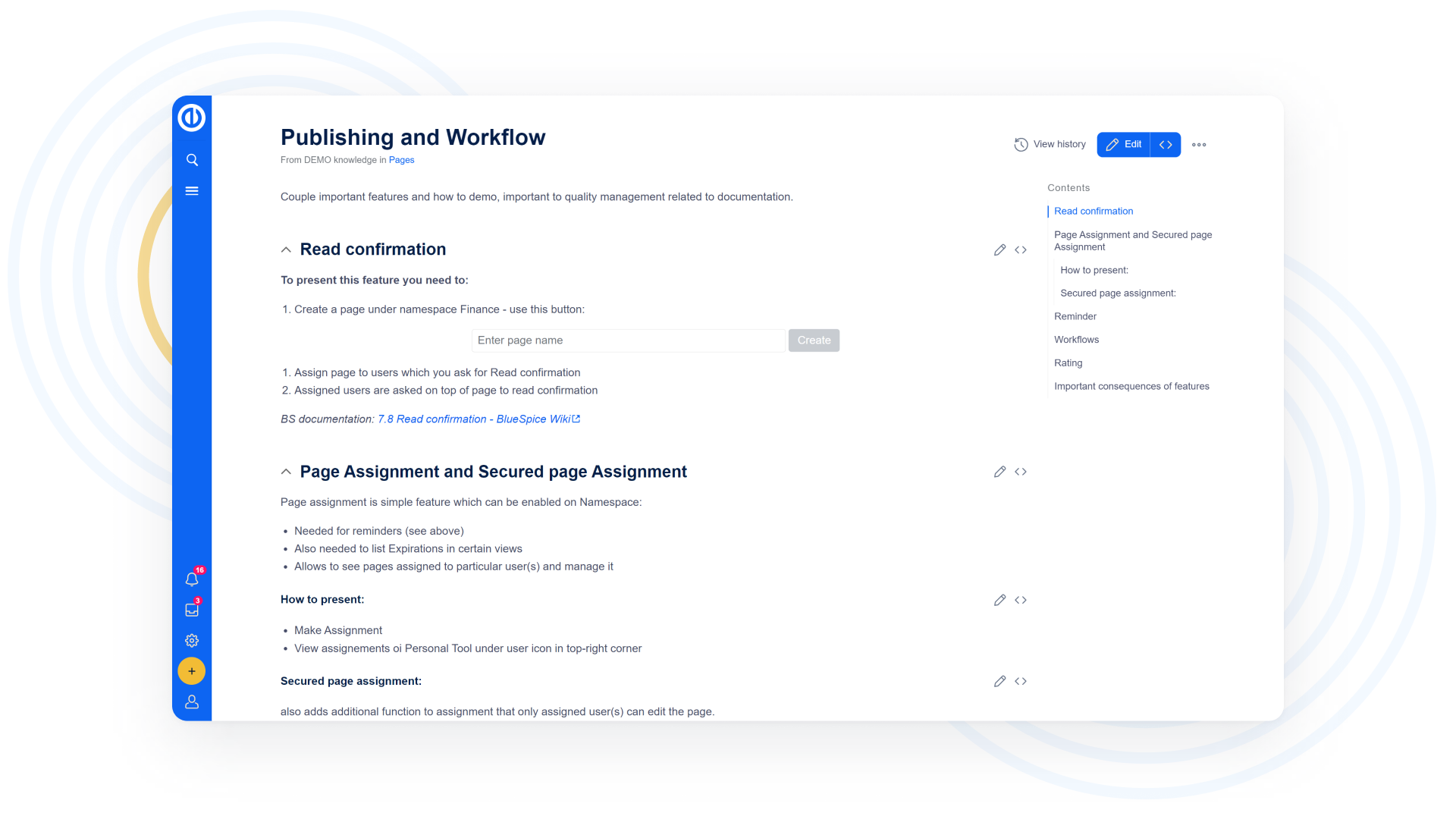 Leverage the robust visual editor to easily create and edit articles, databases, diagrams, pictures, software code, utilize content templates or simply import your existing documents.