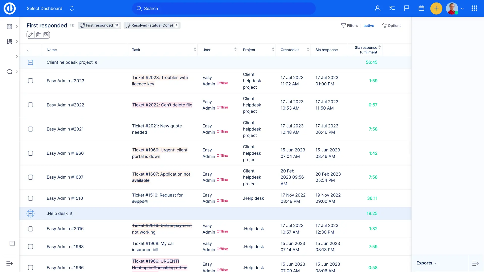 Get an overview of your support service performance. Help Desk Statistics are customizable — you can view performance by users and status and compare statistics for different time periods, allowing for a cross sectional analysis of performance.