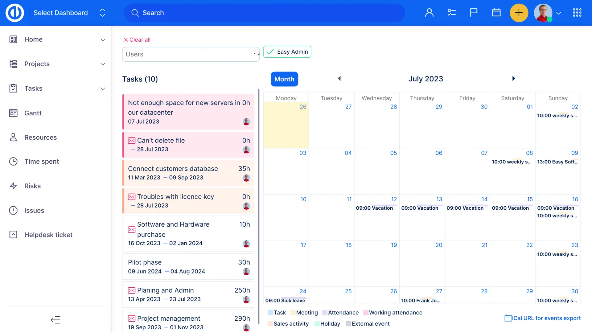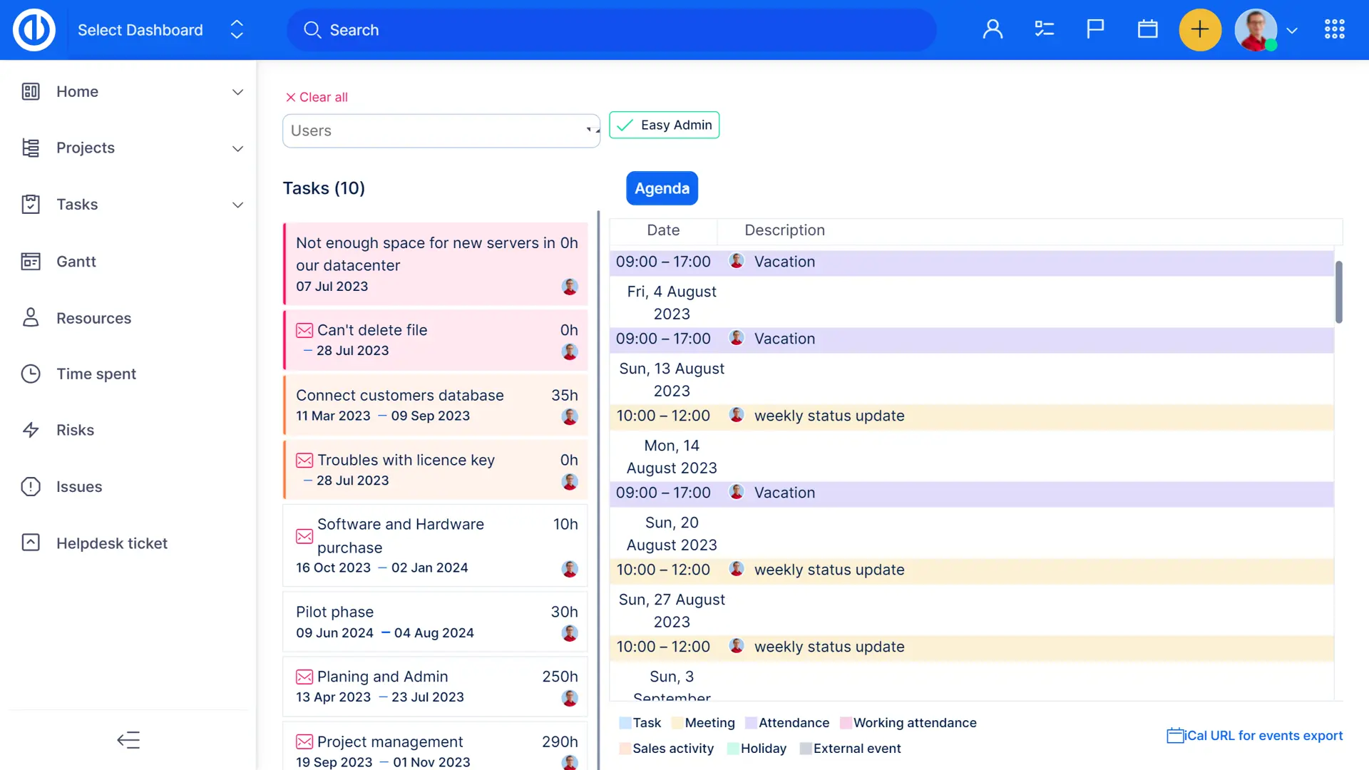 - Журнал всех запланированных мероприятий (просмотр повестки дня)