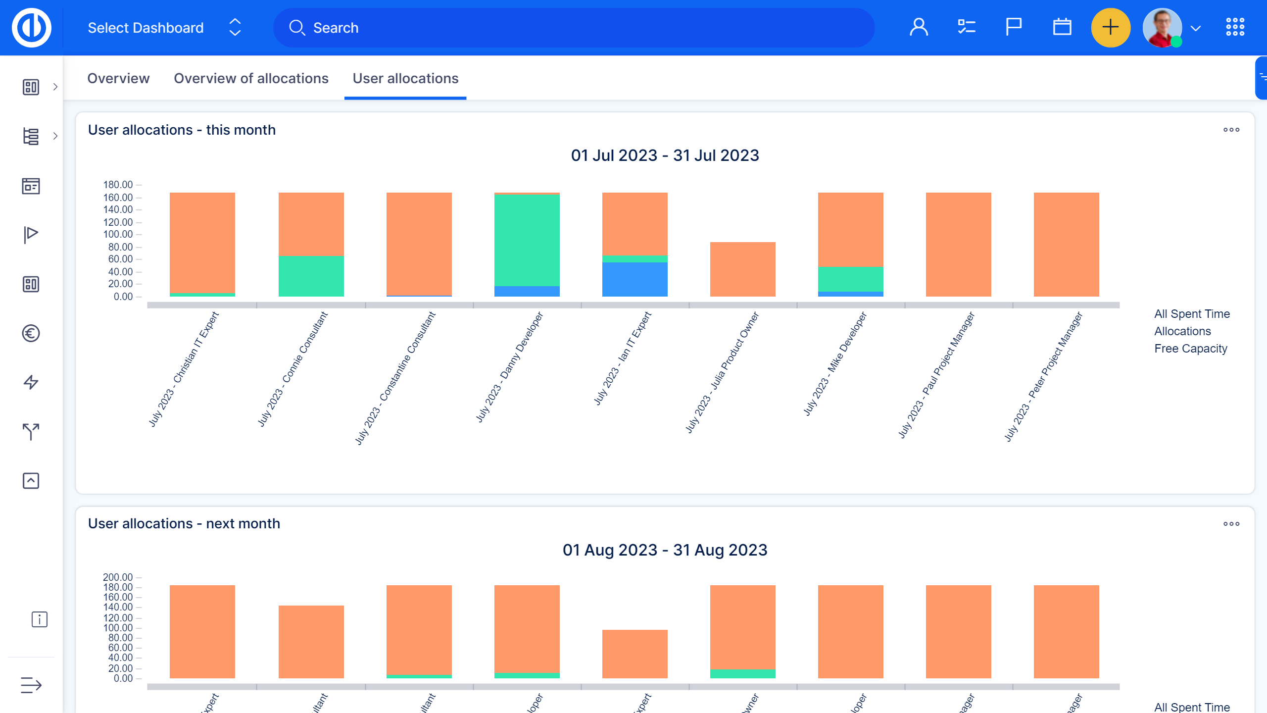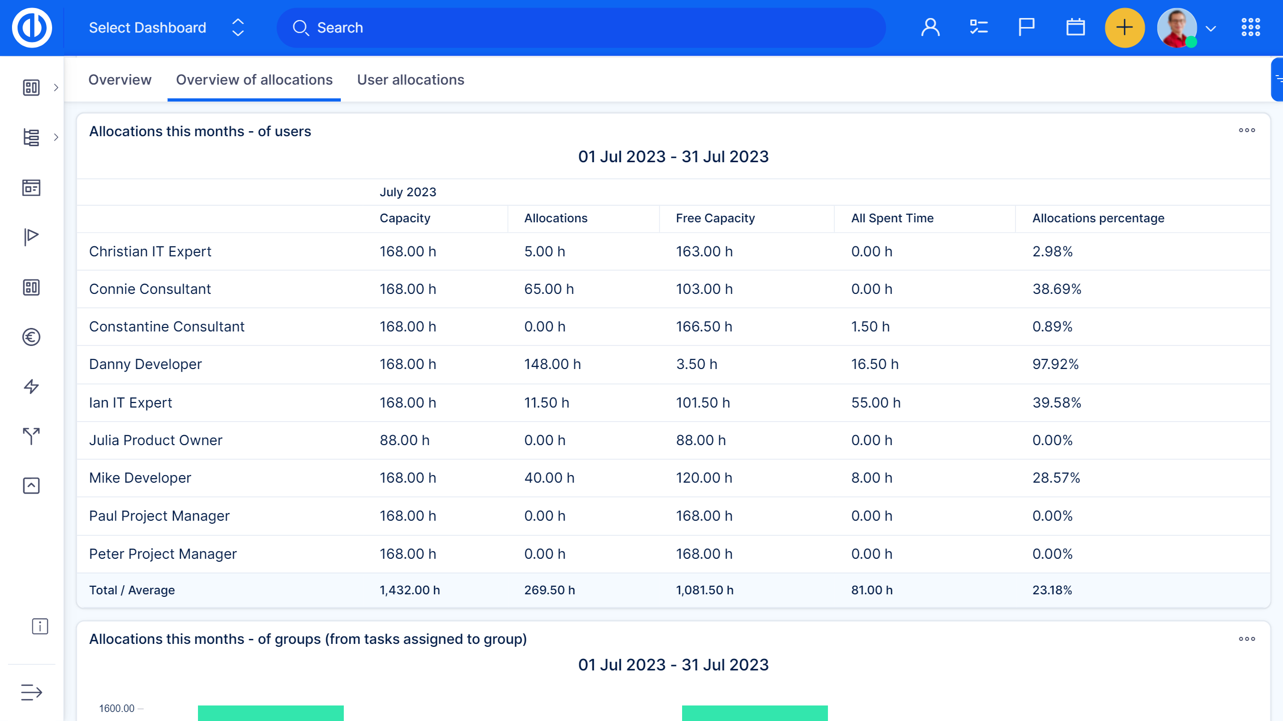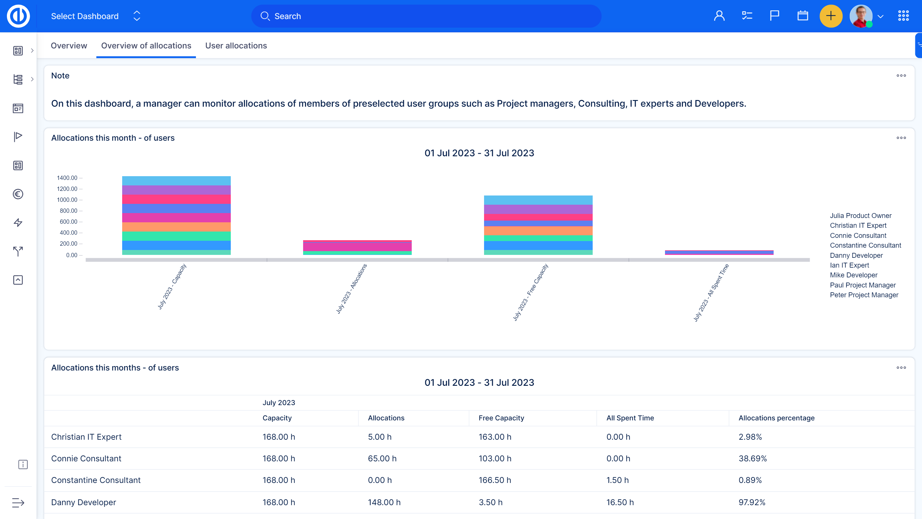 - Диаграмма загрузки пользователей по количеству отведённых часов