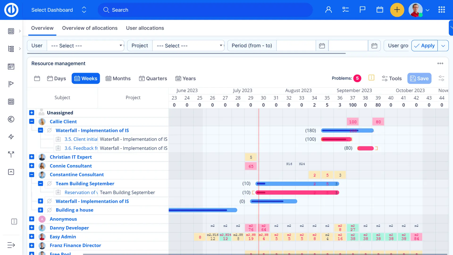 - Сводка проблем — просроченные задачи, накладки в связи с распределением рабочего времени