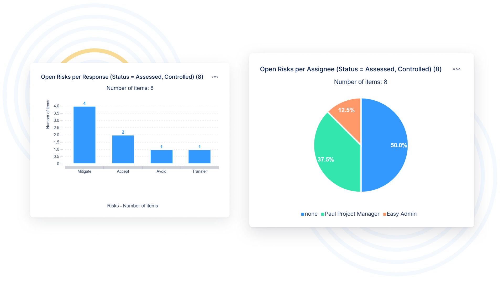 Управление рисками является обязательным процессом для каждого правильно управляемого проекта. Этот инструмент позволяет устанавливать матрицу рисков в вашей организации, управлять рисками в проектах и предоставлять глобальные отчеты о рисках и обзор для управления. Глобальный модуль подходит для ролей линейного менеджера, риск-менеджера или сотрудника по управлению проектами (PMO), в то время как модуль проекта является оптимальным для менеджера проекта, что позволяет ему управлять проектными рисками контролируемым образом для каждого конкретного проекта под его руководством.