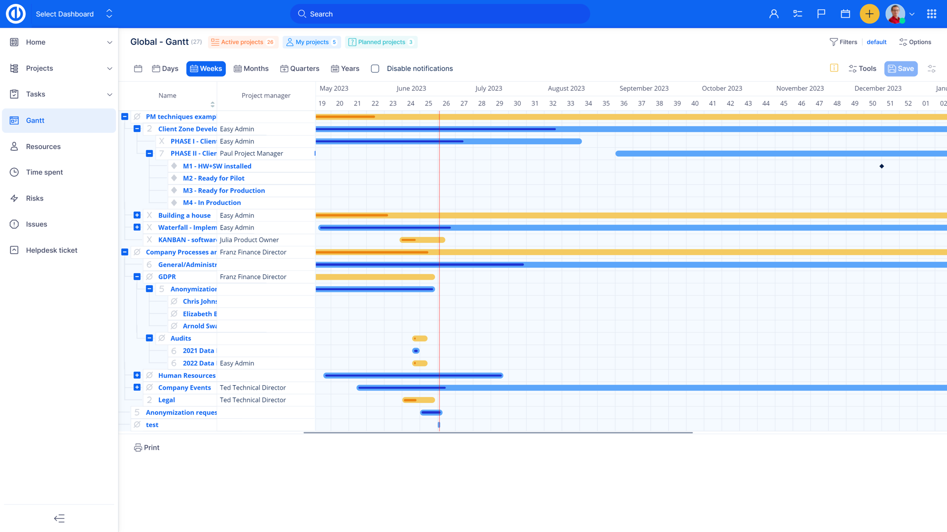 - Обзор потраченных ресурсов по каждому проекту и по портфелю в целом